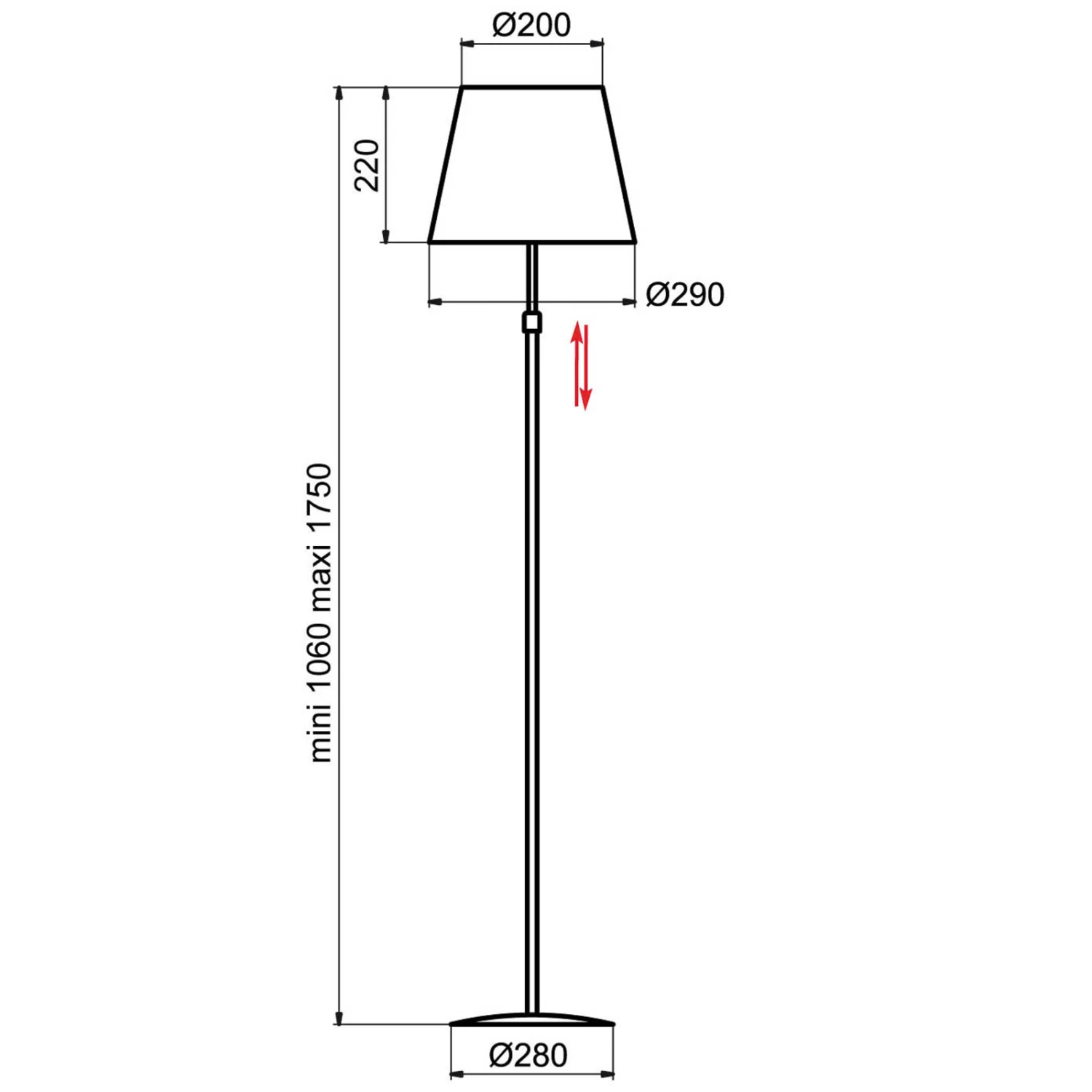 | Autres dimensions | hauteur abat-jour 22 cm ; Ø pied 28 cm ; longueur câble d’alimentation 286 cm |
