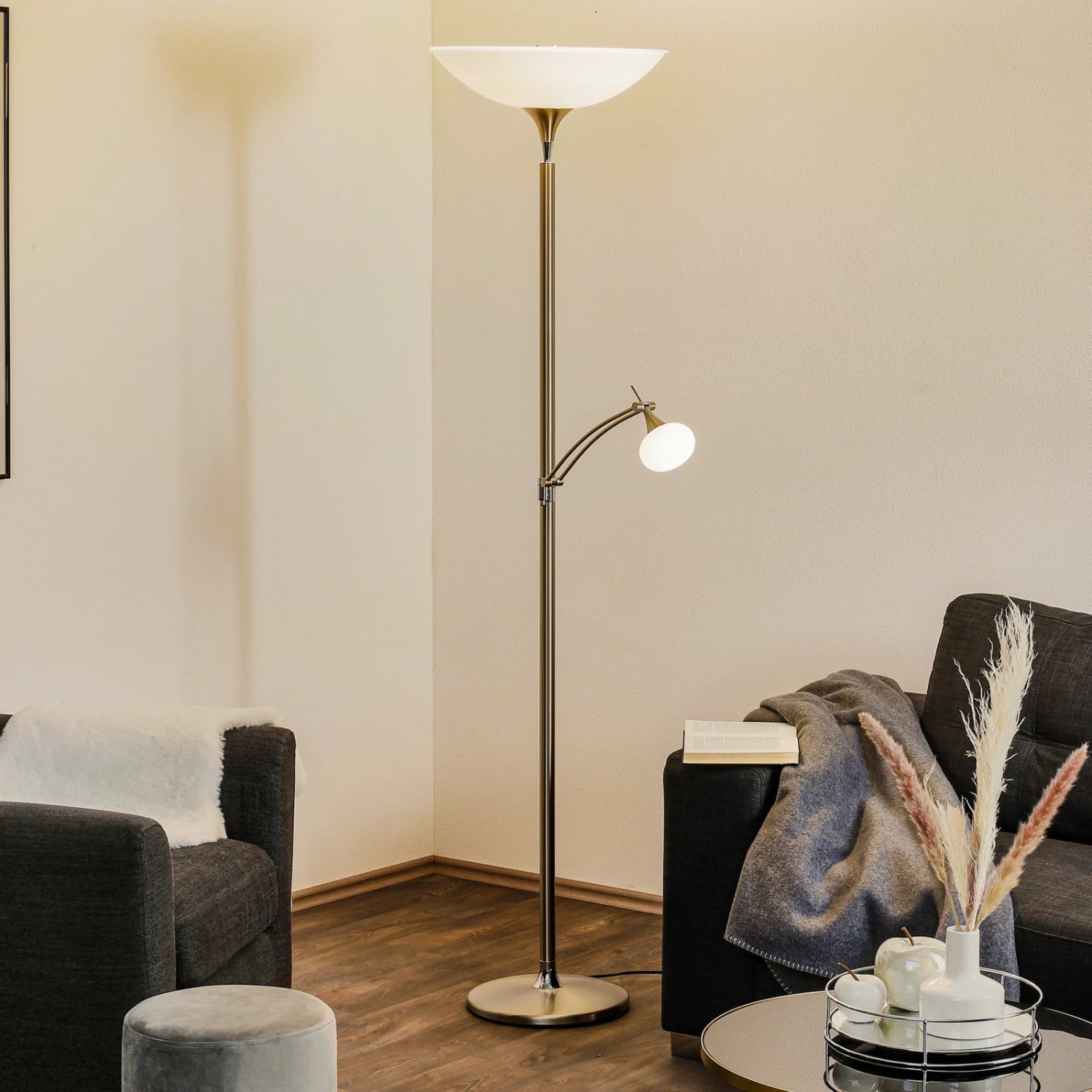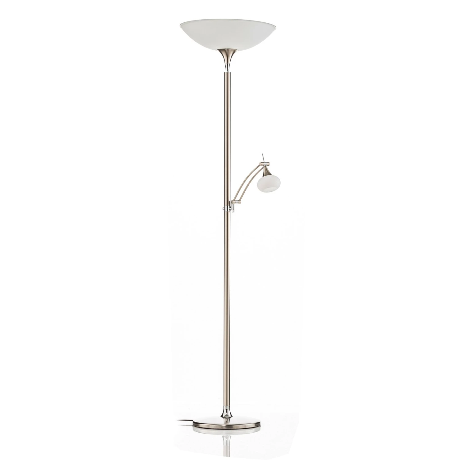 Lampadaire à éclairage indirect LED à la beauté intemporelle avec bras liseuse et variateur d’intensité tactile