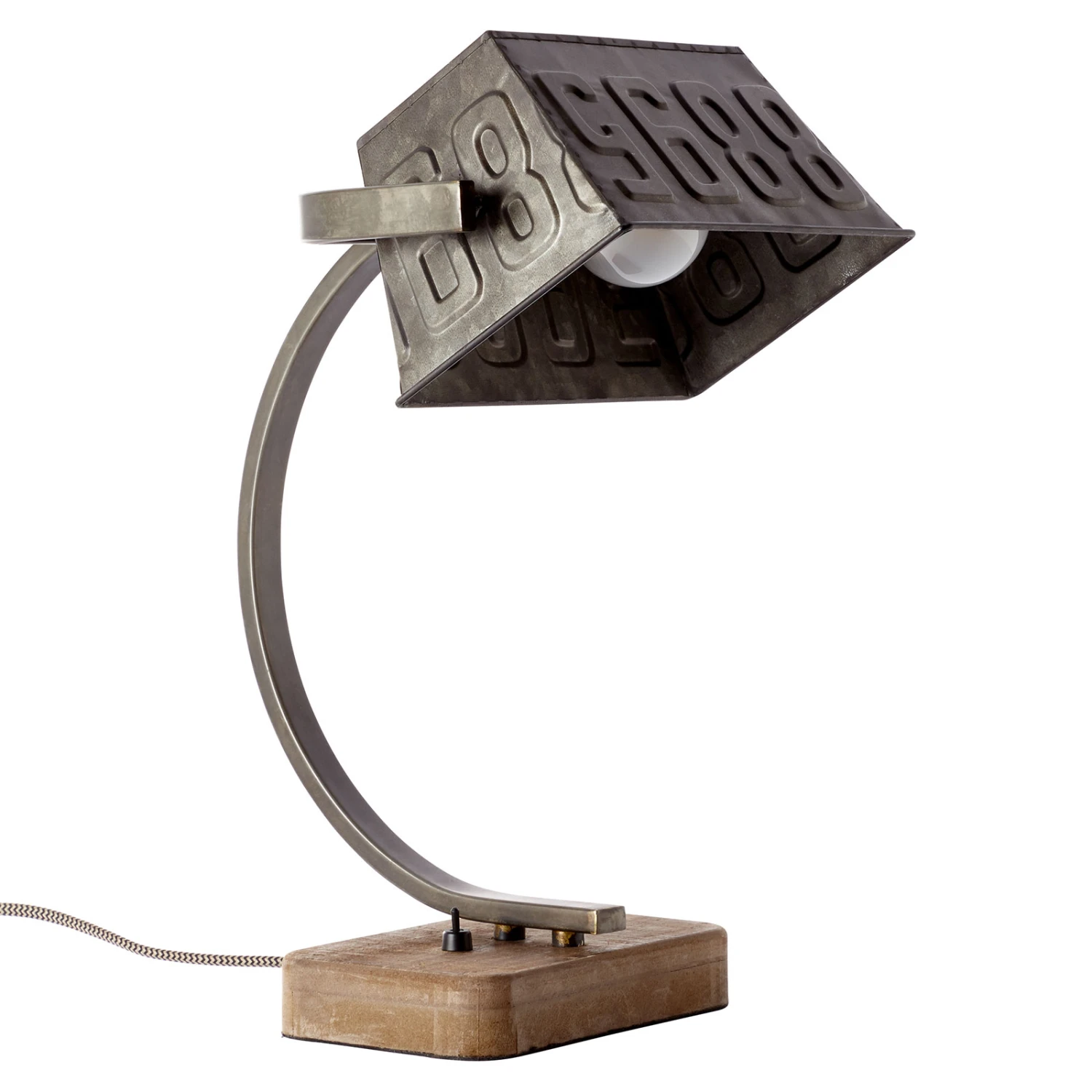 Charme du loft : La lampe de table Drake en métal dégage une atmosphère vintage. Posé sur un socle en bois d’aspect rustique, il constitue un bon éclairage supplémentaire et un accroche-regard exclusif sur le bureau ou la table de chevet. Pour un confort d’éclairage individuel, l’abat-jour avec les chiffres en relief peut être pivoté.