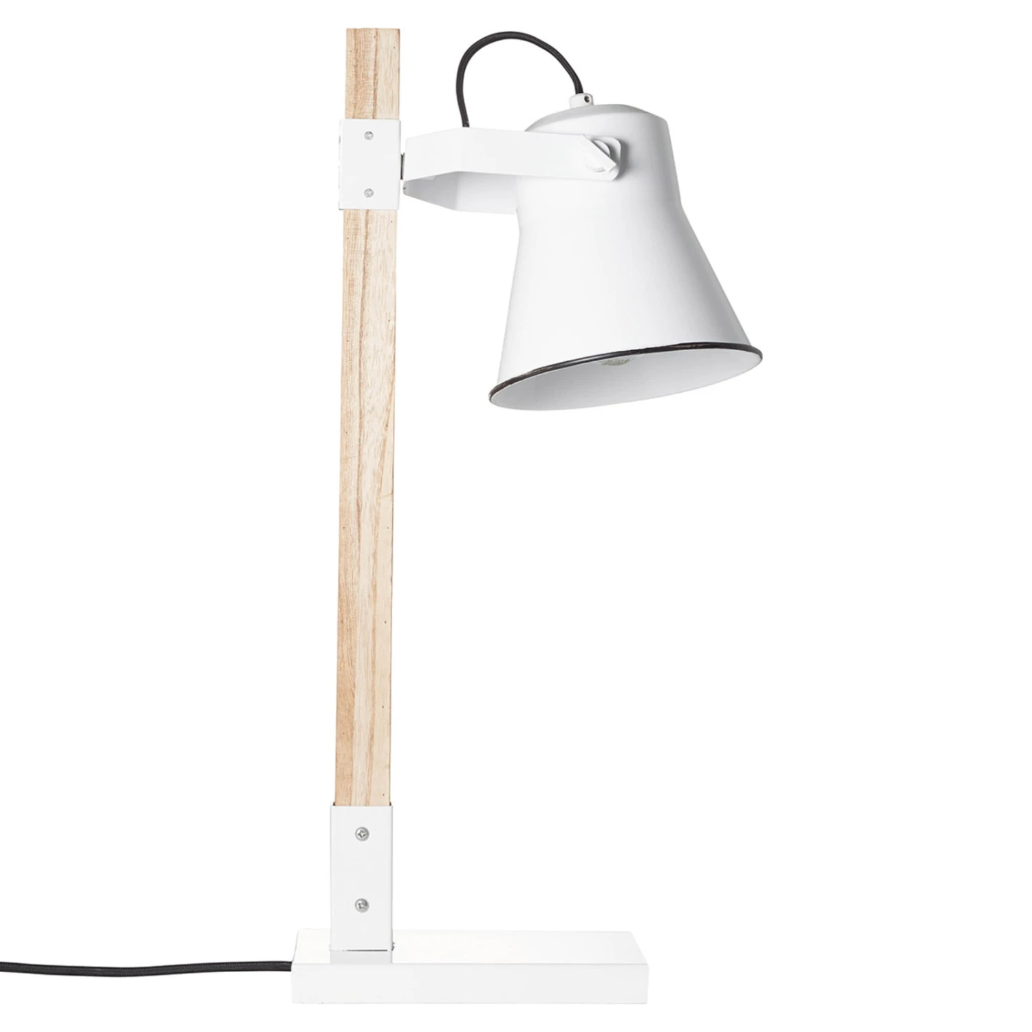 Cette belle source de lumière est la touche finale parfaite à un style d’ameublement dans le design tendance des maisons de campagne. La charrue est équipée d’un abat-jour pivotant en métal d’aspect émaillé, qui permet d’orienter la lumière selon vos besoins. Le cadre est en bois clair avec une base blanche.