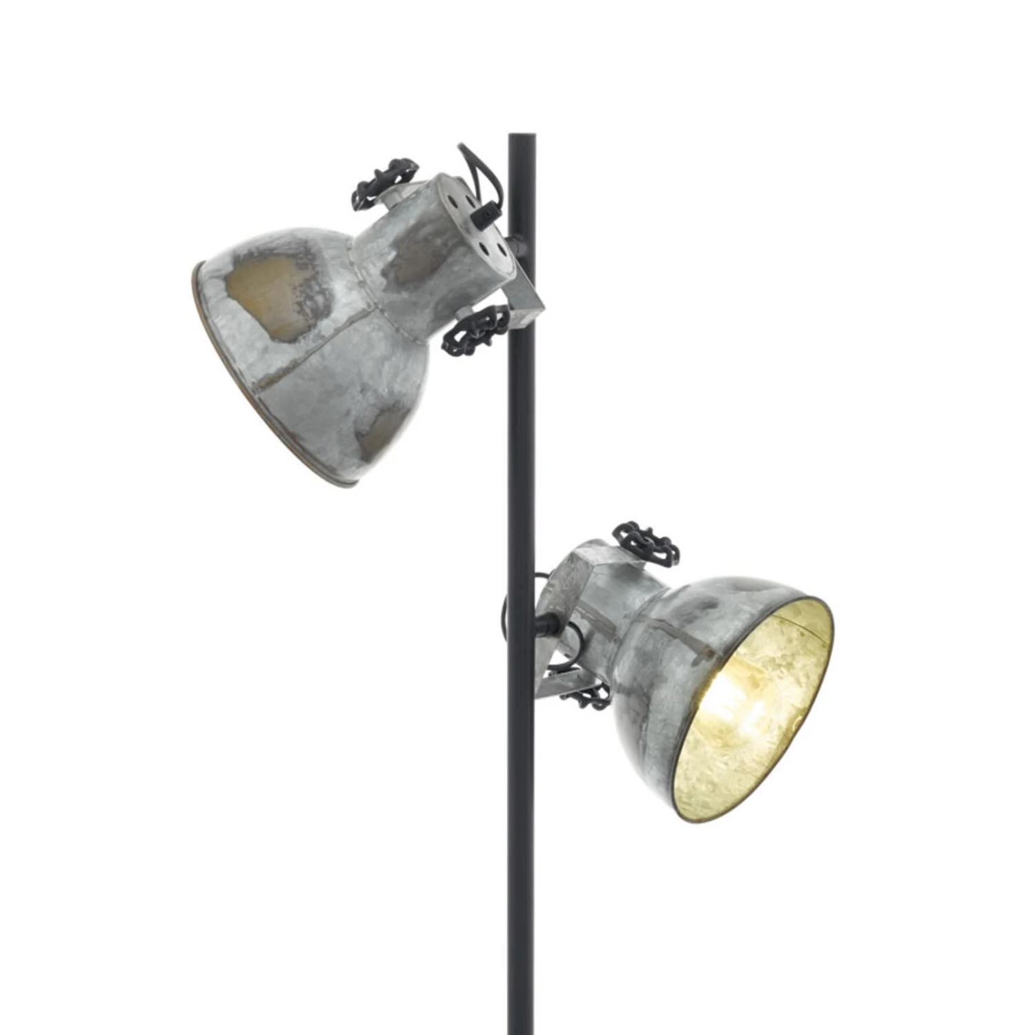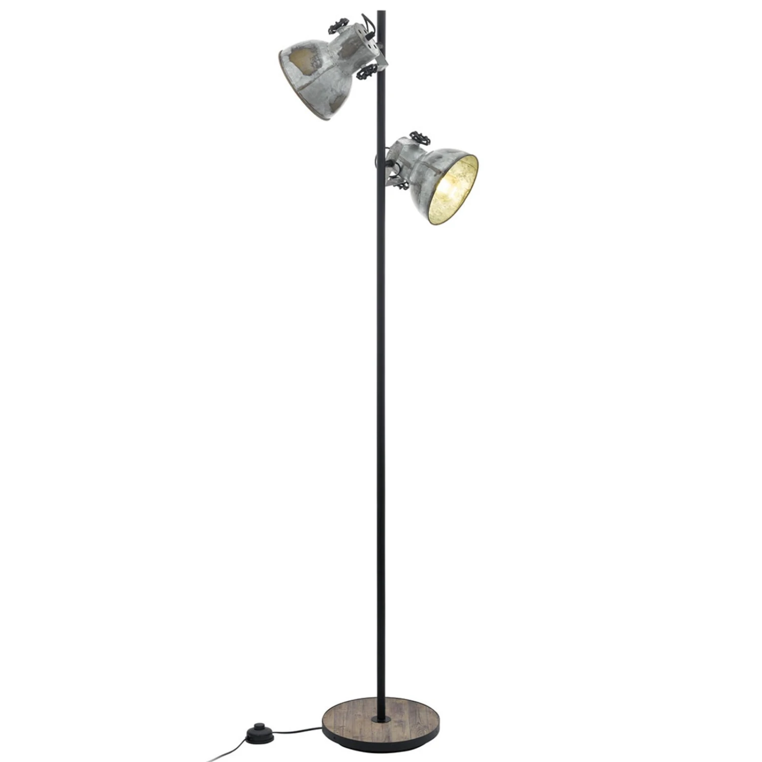 Le lampadaire Barnstaple représente une grande source lumineuse pour l’intérieur. Cette lampe élégante possède une tige en acier noire et étroite et deux spots placés à différentes hauteurs au bout de la tige. Elle repose sur un pied rond avec une plaque en bois. Les abat-jour sont fabriqués en zinc et affichent un look usé au charme industriel.