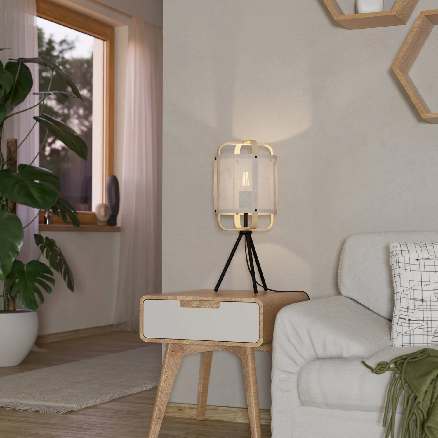 EGLO Lampe à Poser Surfleet Abat-jour En Bambou/lin