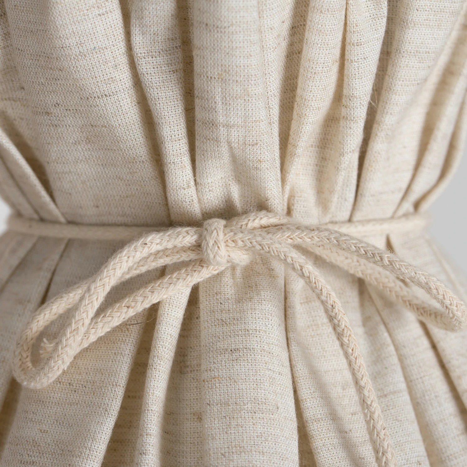 Tables de chevet, rebords de fenêtre, tables d’appoint, commodes – la lampe à poser Lola n’est jamais déplacée. Son caractère naturel émane de l’abat-jour conique en tissu de coton écru, fixé par une corde beige sur la structure métallique intérieure.
