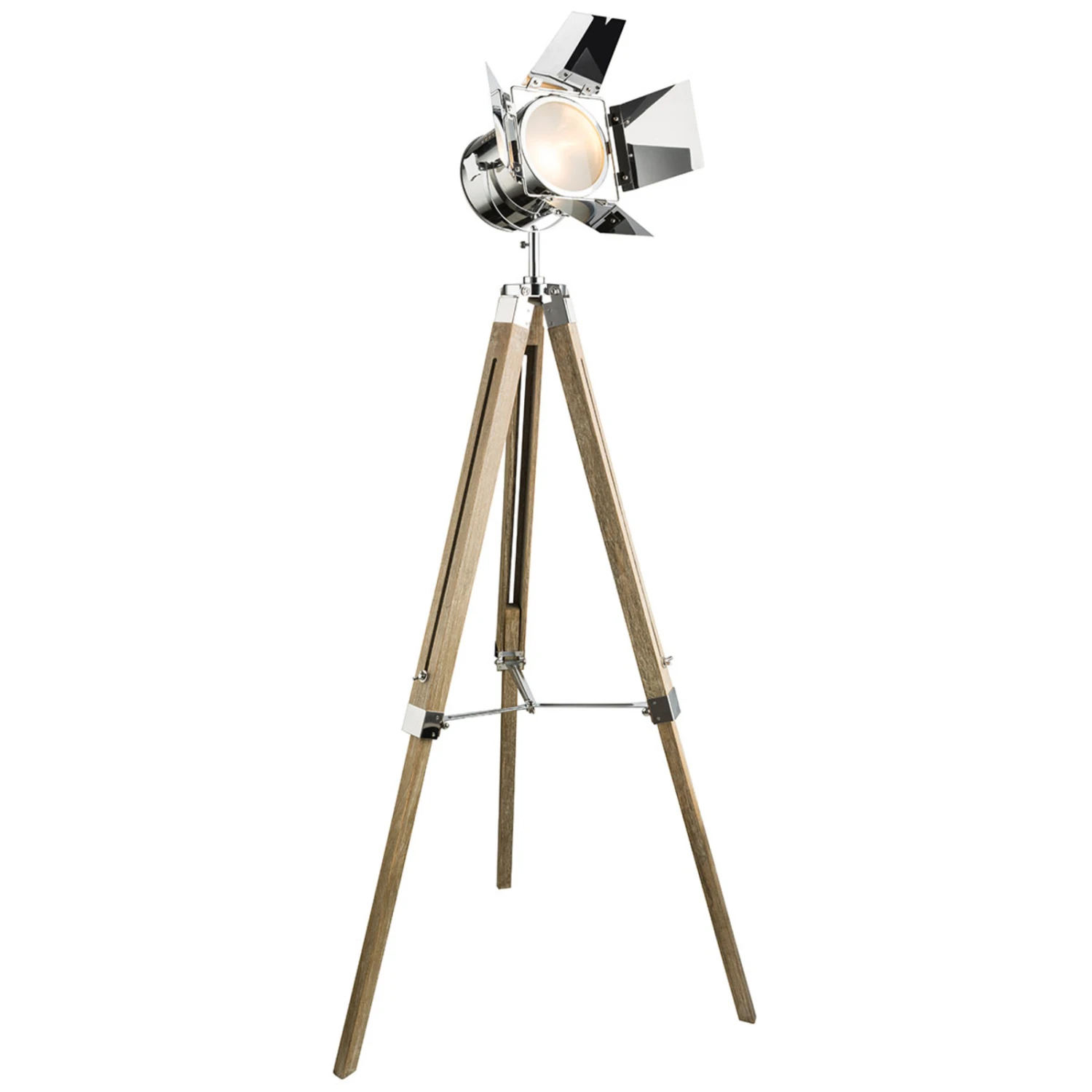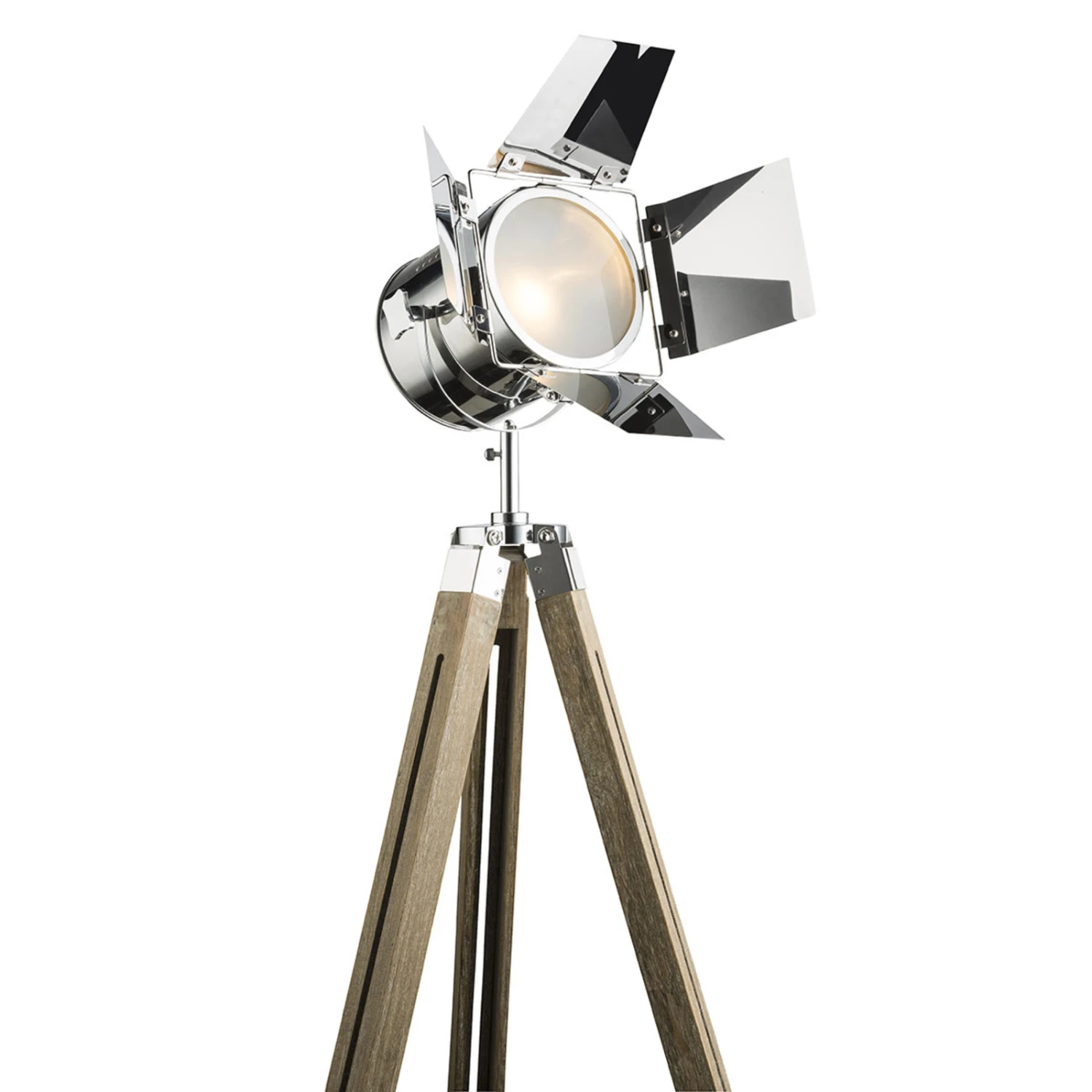 Moderne lampadaire Evy combinant le bois et le chrome.