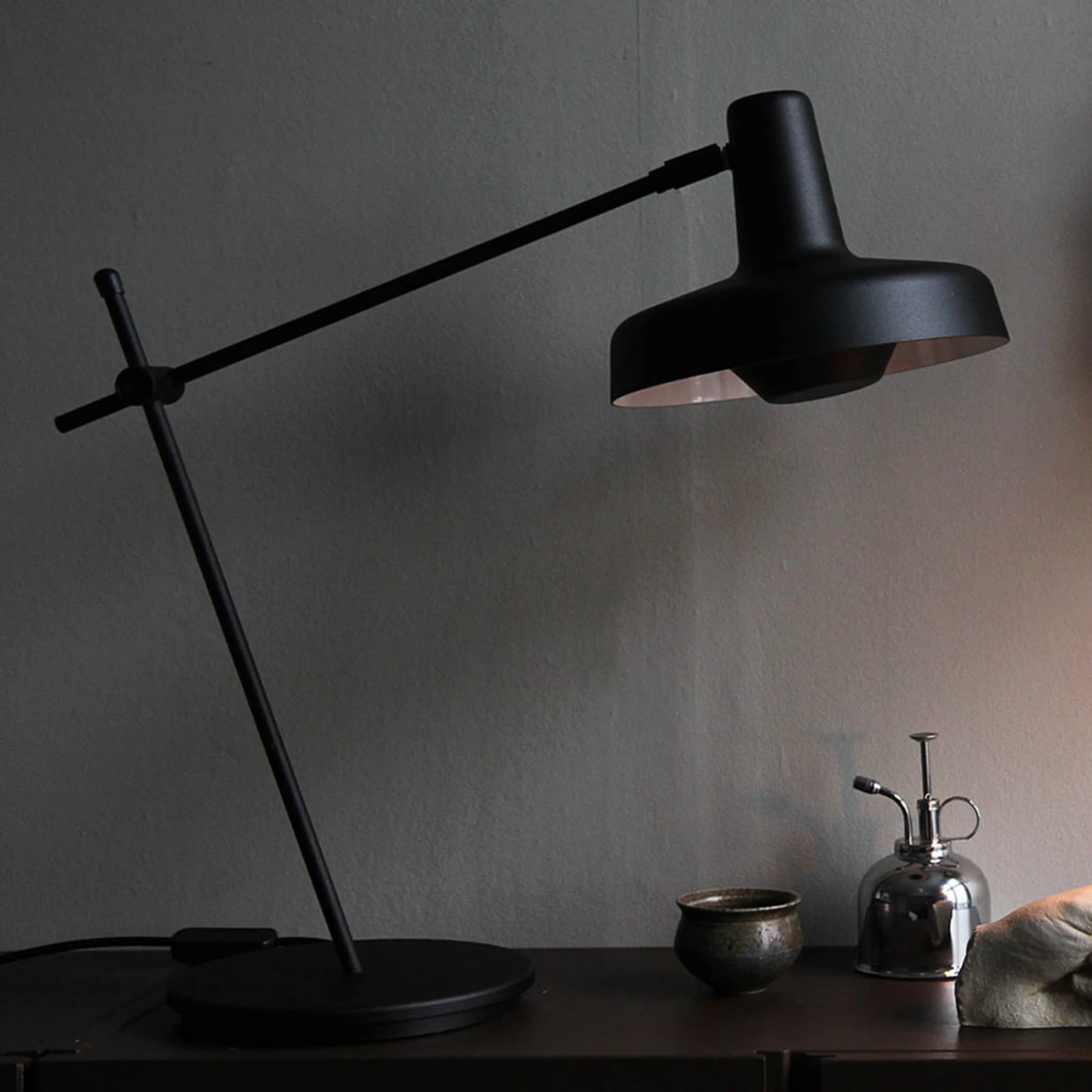 La lampe de table Arigato, dont la conception et la production sont assurées par l’entreprise croate GRUPA, se présente comme une lampe polyvalente et extrêmement flexible. La lampe de table se compose d’un pied rond, d’une structure en acier divisée en deux parties et d’un abat-jour rond en aluminium. Des articulations aux points de jonction permettent d’orienter et de positionner librement l’abat-jour. Ce dernier est doté d’un écran pour optimiser le confort visuel et d’une face intérieure laquée blanche pour une émission lumineuse à faible perte.