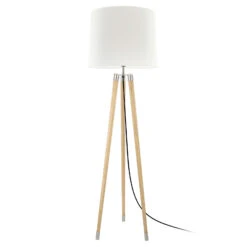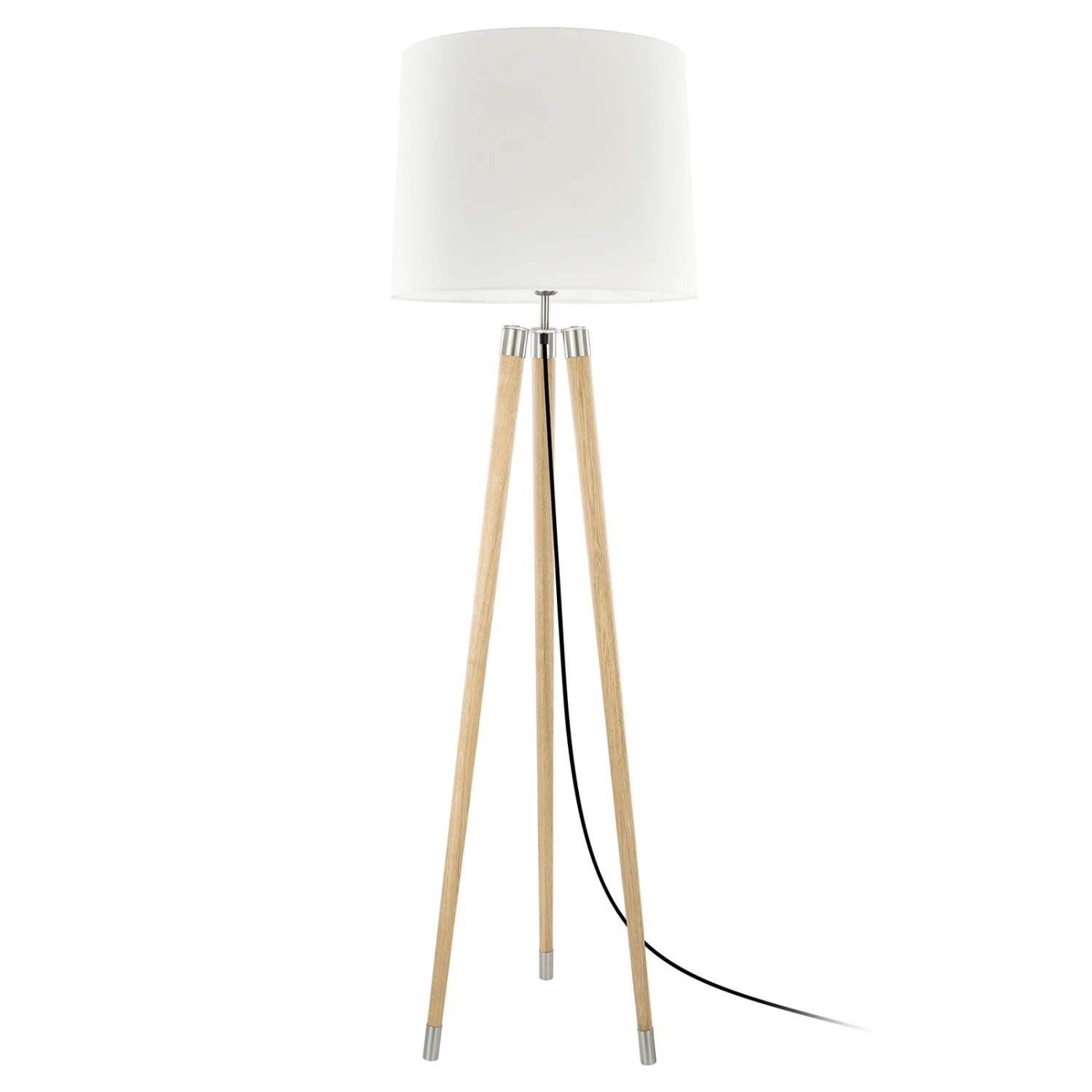 Lampadaire Briany avec structure en bois tourné à trois pieds