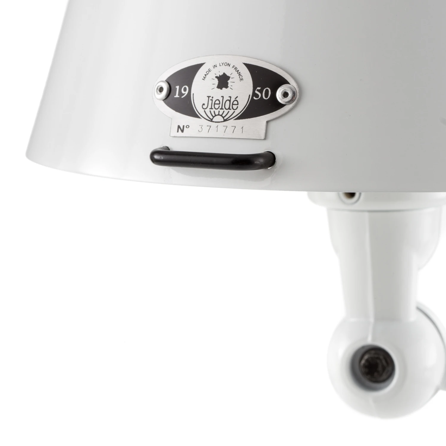 Le fabricant Jieldé de Lyon est responsable de cette création d’éclairage. Créée dans les années 1950 par Jean-Louis Domecq, l’entreprise fabrique jusqu’à aujourd’hui tous ses luminaires avec un travail à la main élaboré et dans un processus original. Ainsi, chaque lampe est une pièce unique, identifiée par un numéro individuel sur l’abat-jour.