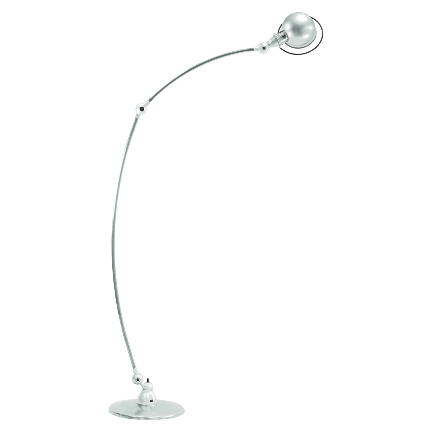 Le lampadaire arqué est en métal du pied à la tête et fait l’objet d’un travail soigné à la main dans la manufacture de luminaires française de Jieldé. Chaque lampe de Jieldé possède une plaque numérotée qui l’identifie en tant que pièce unique et authentique.