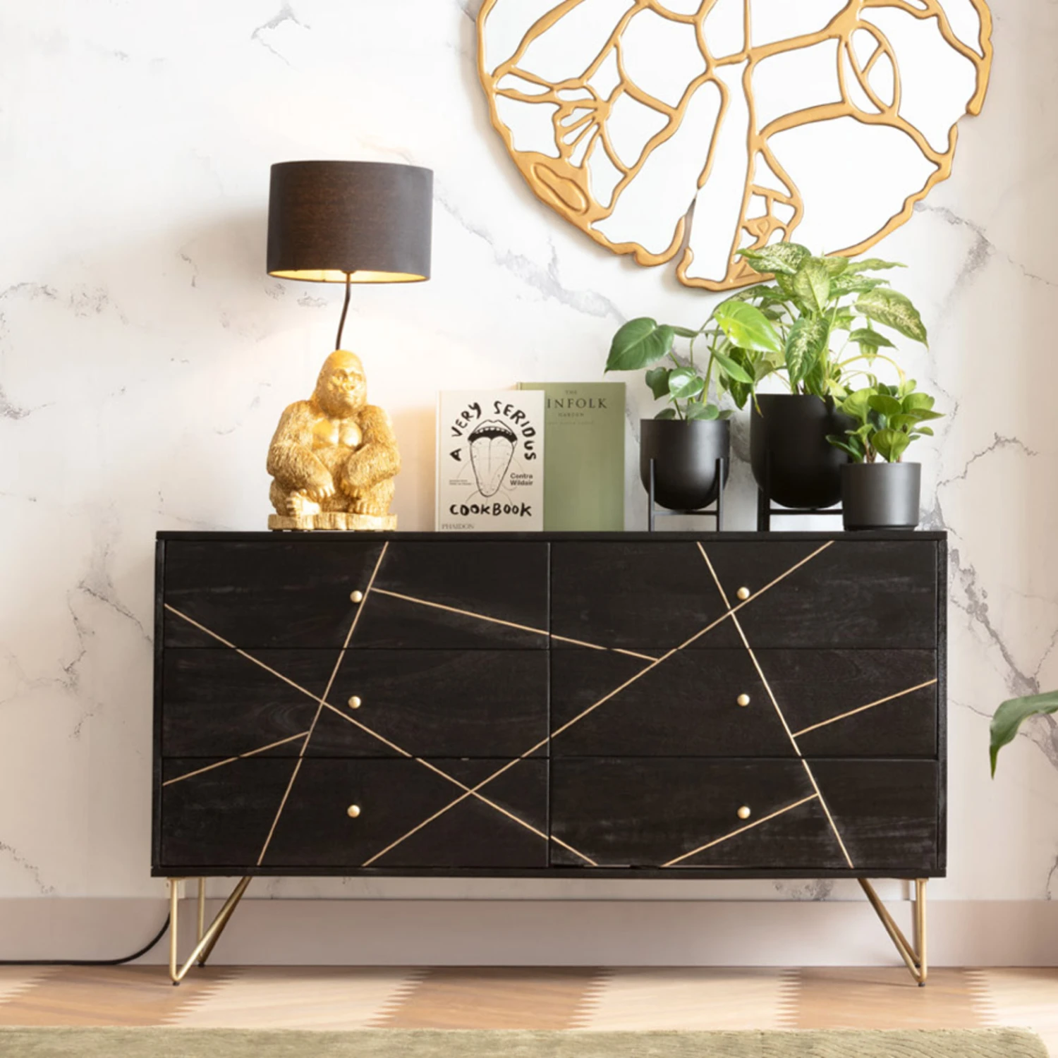 Un gorille assis forme la base de la lampe de table Animal Monkey Gorilla. Il est fabriqué en plastique et a un design de couleur dorée. En combinaison avec l’abat-jour cylindrique noir, dont l’intérieur est également de couleur dorée, on obtient une lampe de table efficace au design extraordinaire. La douille E27 cachée dans l’abat-jour peut être équipée d’une lampe LED jusqu’à 5 W, ampoule non incluse.
