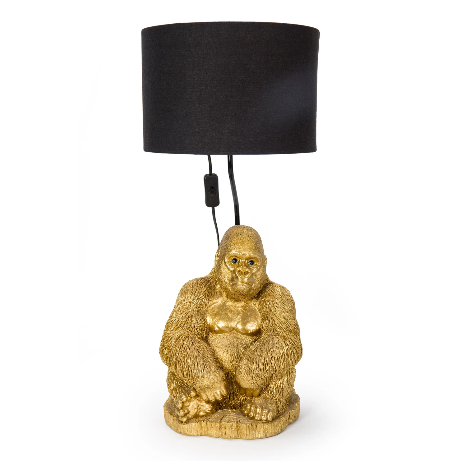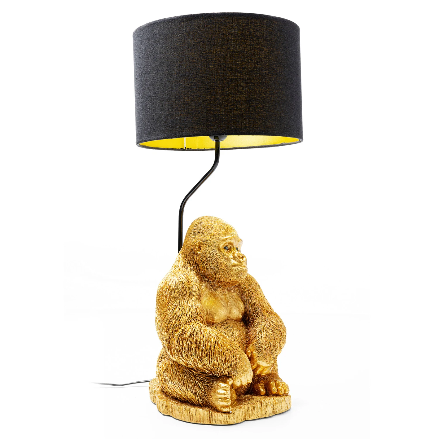 Lampe de table Animal Monkey Gorilla en or avec abat-jour en textile noir