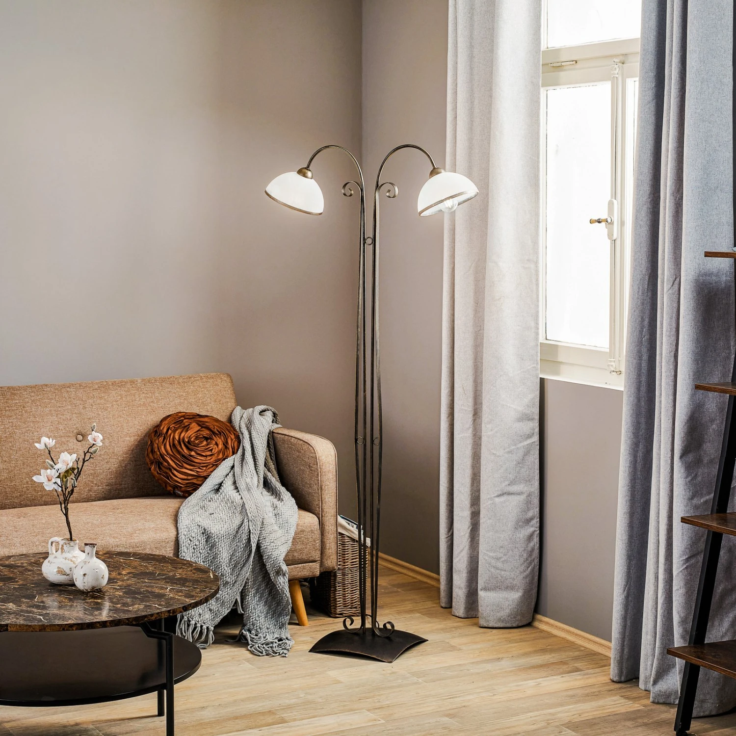 Lampadaire Antica Style Rustique, à Deux Lampes