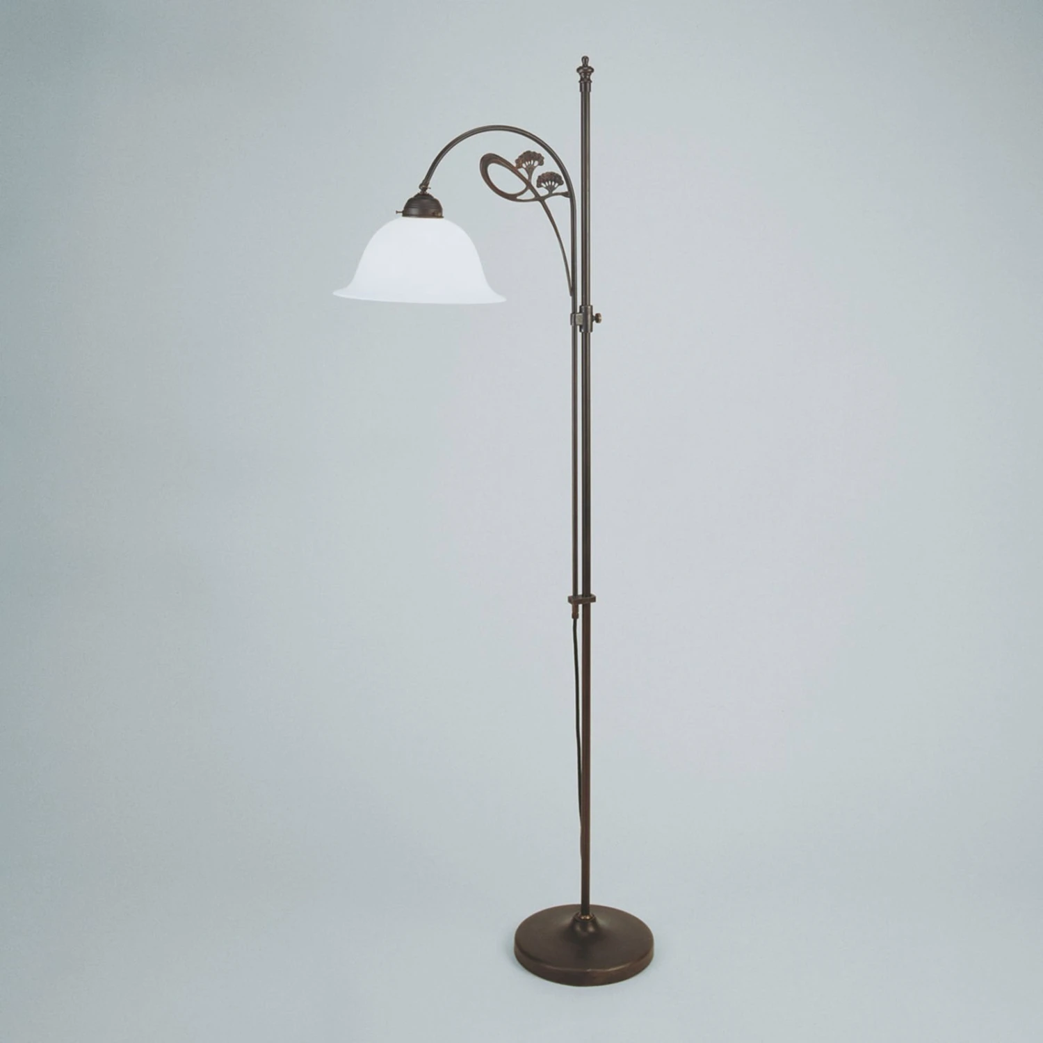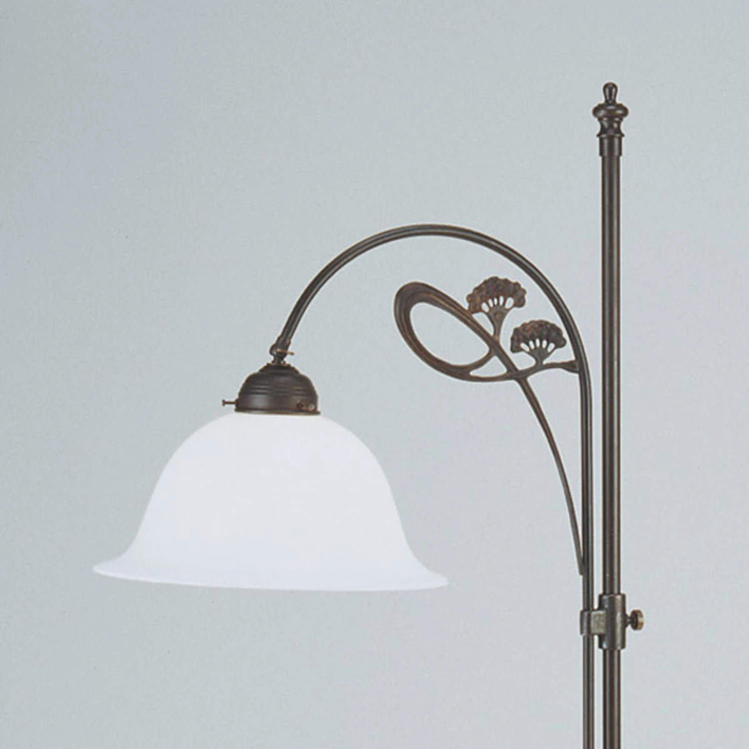 Ilka, un lampadaire raffiné au design remarquableLe lampadaire Ilka est un luminaire réglable en hauteur dont les éléments sautent immédiatement aux yeux. Il offre une multitude de possibilités d’éclairage grâce à son abat-jour soufflé à la bouche qui s’ouvre et aux réglages flexibles de la hauteur et de la direction. La structure élaborée attire l’attention et présente des formes florales extravagantes en plus des entretoises incurvées. Les formes tout à fait exceptionnelles du support sont complétées par une couleur antique. Un léger traitement à l’huile d’olive permet d’obtenir un effet brillant.