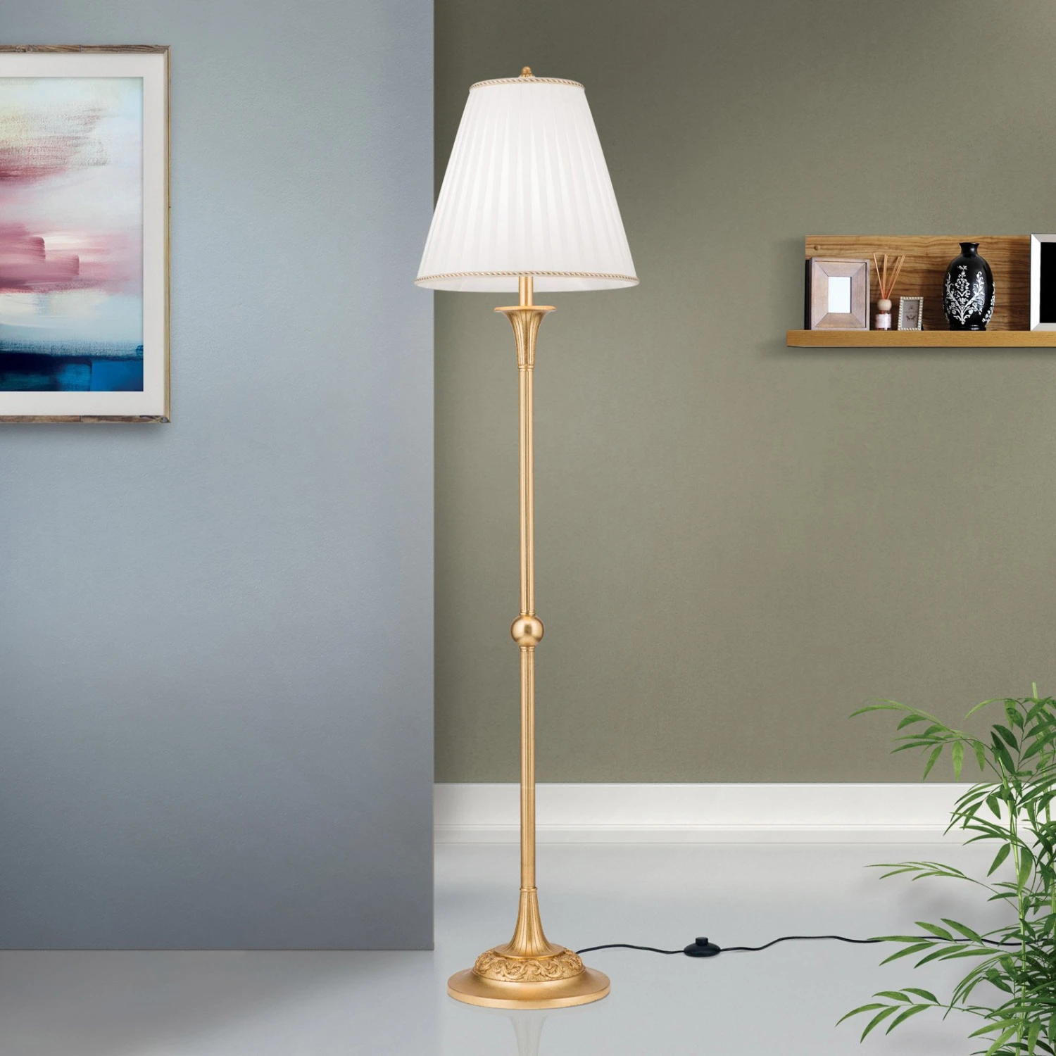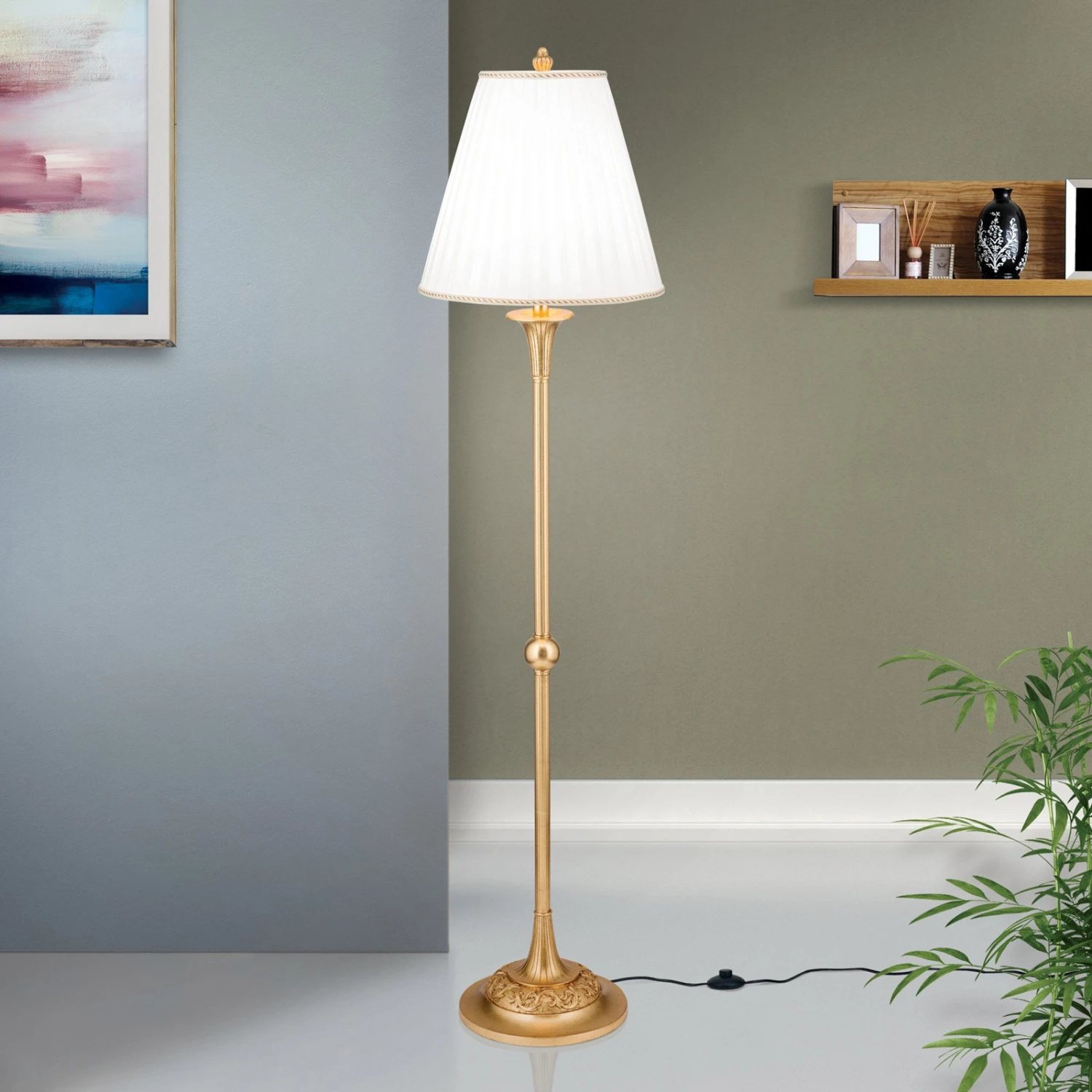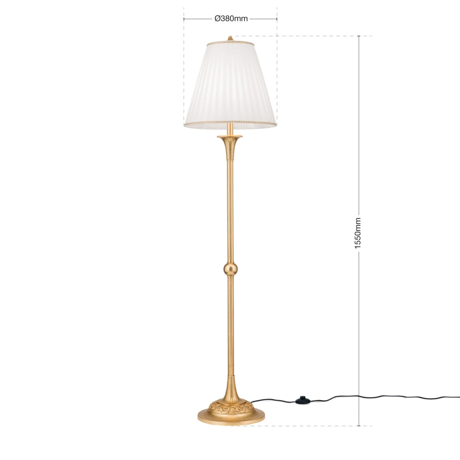 Ce lampadaire est un véritable accroche-regard dans tous les aménagements. Le pied du lampadaire doré antique et l’abat-jour plissé de couleur crème qui diffuse une lumière blanche et chaleureuse, assurent une ambiance conviviale et très agréable.