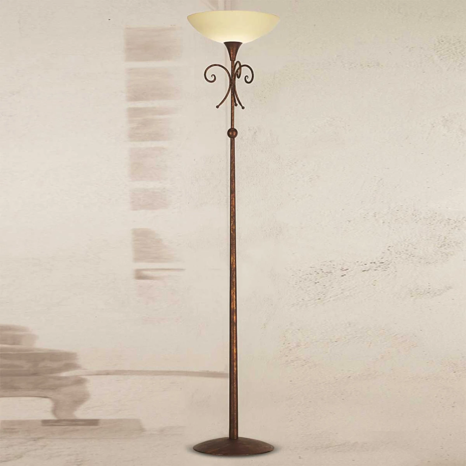 Lampadaire Federico attrayant à l’aspect antiqueLe lampadaire Federico unique en son genre crée une ambiance agréable et un éclairage d’accentuation agréable. Le lampadaire de 180 cm de haut a un diamètre de 39 cm et s’harmonise avec les styles d’habitation les plus divers. La structure métallique marron antique est élégamment décorée.