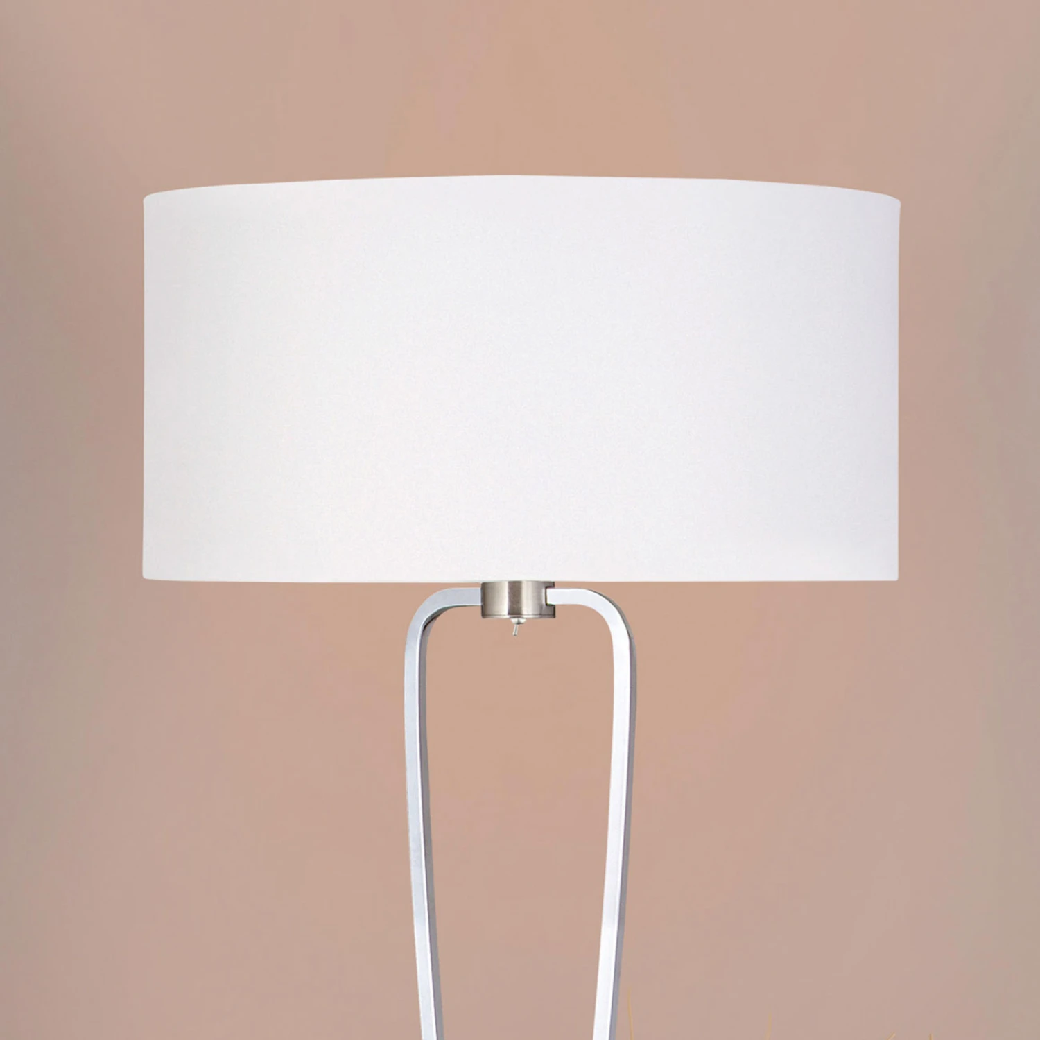 Le mariage entre un métal de couleur nickel et d’un abat-jour blanc en chintz brillant confère à cet article un aspect moderne tandis que son design séduisant contribue à créer une ambiance chic et ravissante. Avec le luminaire PARIS, votre intérieur revêt un aspect tellement accueillant. Le lampadaire, avec sa forme spéciale, représente un objet très convoité des regards.