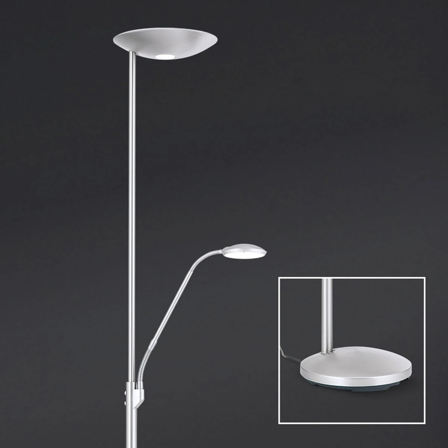 L’intensité et la couleur de la lumière peuvent être modifiées pour les deux sources lumineuses au moyen d’un interrupteur à pression intégré, et ce en continu. C’est très confortable. De plus, la tête de la lampe de lecture peut être réglée grâce au bras flexible en forme de col de cygne.