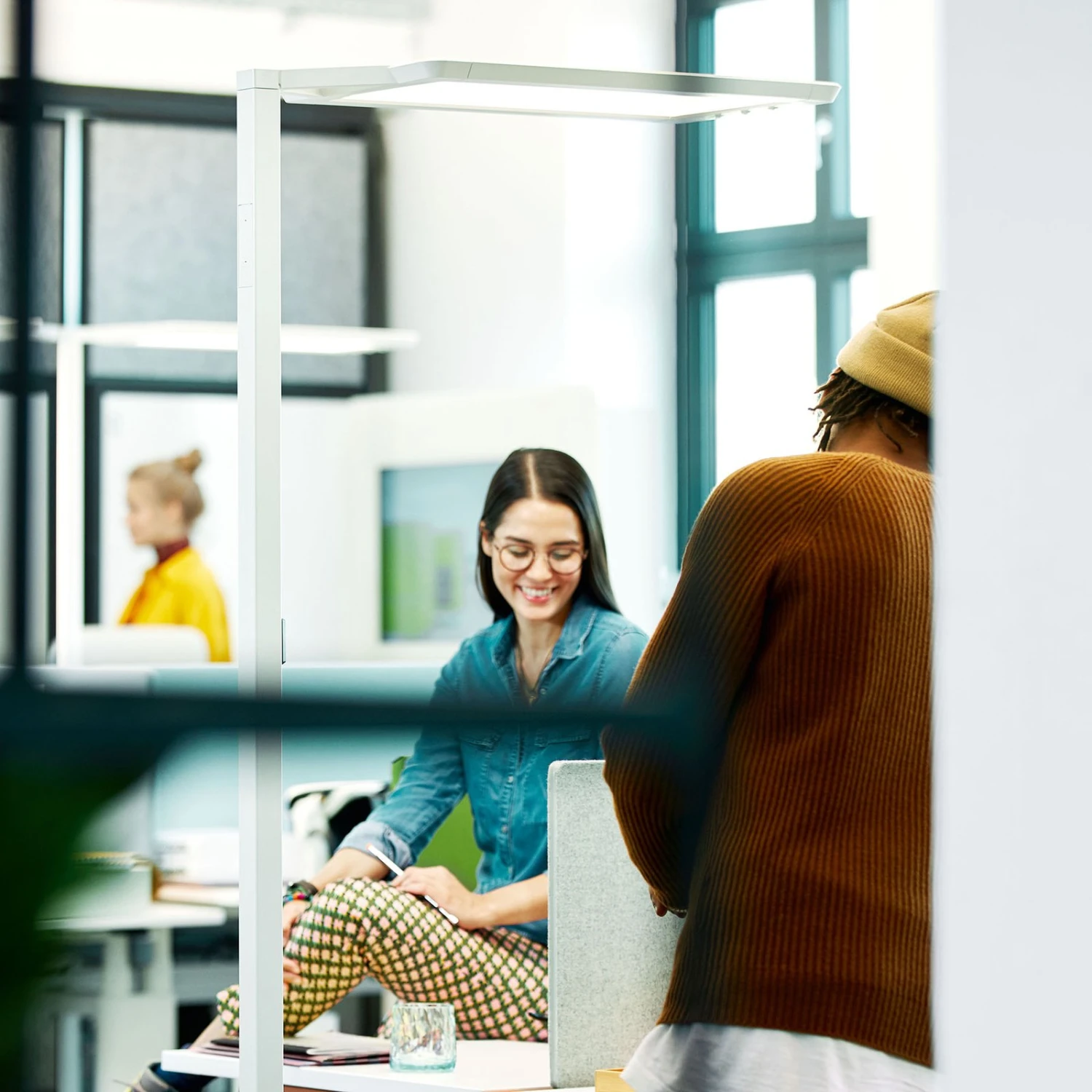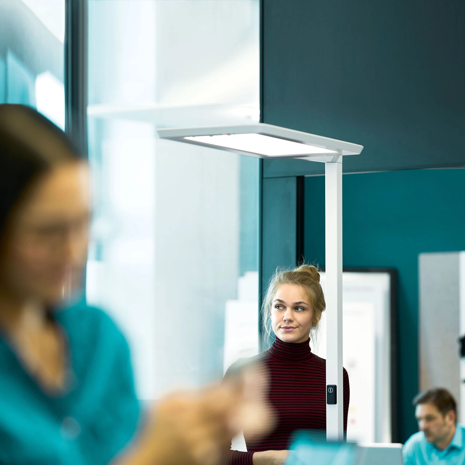 Lampadaire de bureau LED pilotable Yara.single avec multicapteur LTX et lumière blanche variable