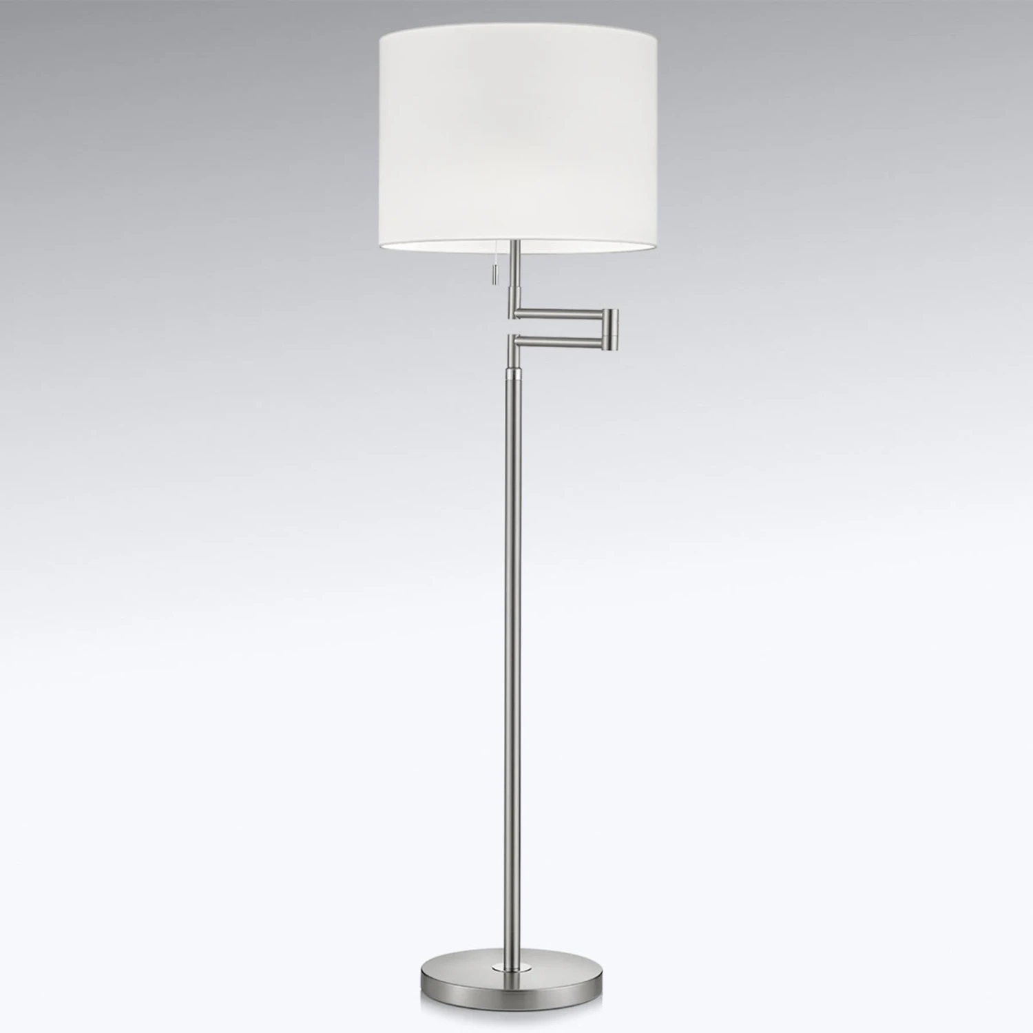 Que ce soit à côté du fauteuil de lecture ou comme éclairage d’appoint atmosphérique dans le salon, le lampadaire Lilian attire de nombreux regards admiratifs avec son aspect métallique plutôt cool et discret. Les éléments de design en nickel mat et en chrome s’harmonisent parfaitement avec l’abat-jour en chintz blanc. Sur le plan technique également, le lampadaire à gradation peut être qualifié de sophistiqué. Un variateur de lumière LED est intégré au câble de la prise du lampadaire, ce qui permet d’obtenir facilement l’effet lumineux souhaité. Le lampadaire Lilian, flexible et réglable individuellement, peut également être allumé et éteint à la main grâce à l’interrupteur à tirette.
