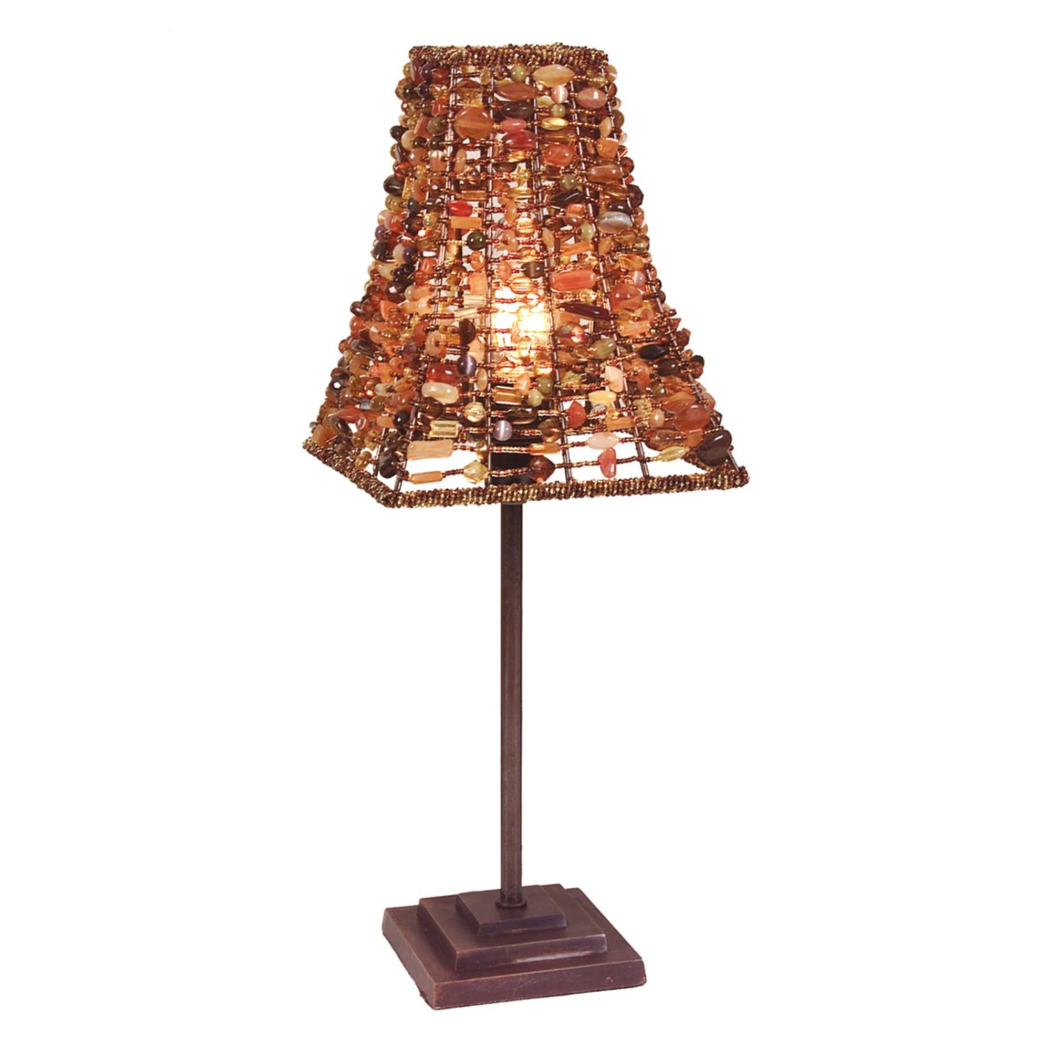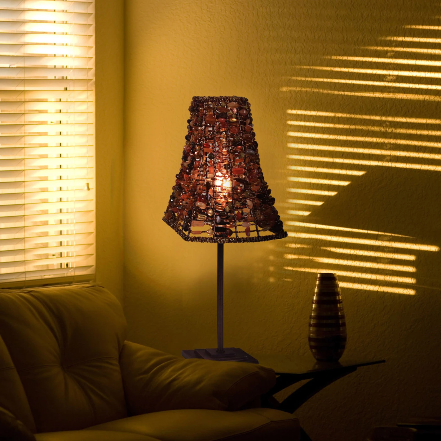 L’abat-jour de la lampe de table Bella est serti de pierres naturelles dans les tons marron ainsi que d’ornements de couleur dorée. Sa forme carrée est également reprise par le pied de la lampe. Bella soutient l’atmosphère chaleureuse d’une salle de séjour et lui donne une touche orientale.