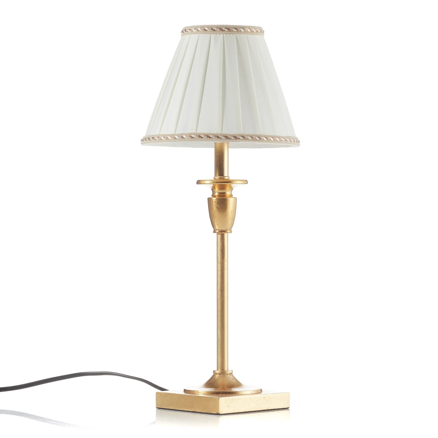 La lampe à poser Donata est disponible en deux tailles. Sa forme indémodable et son abat-jour plissé séduisent. La combinaison du textile de couleur crème et des moulures décoratives doré antique confère à la lampe à poser une beauté hors du temps. Donata est une lampe qui s’intègre parfaitement dans une ambiance raffinée. Le caractère spécial de sa surface à l’aspect antique est obtenu grâce à un travail sophistiqué du matériel.