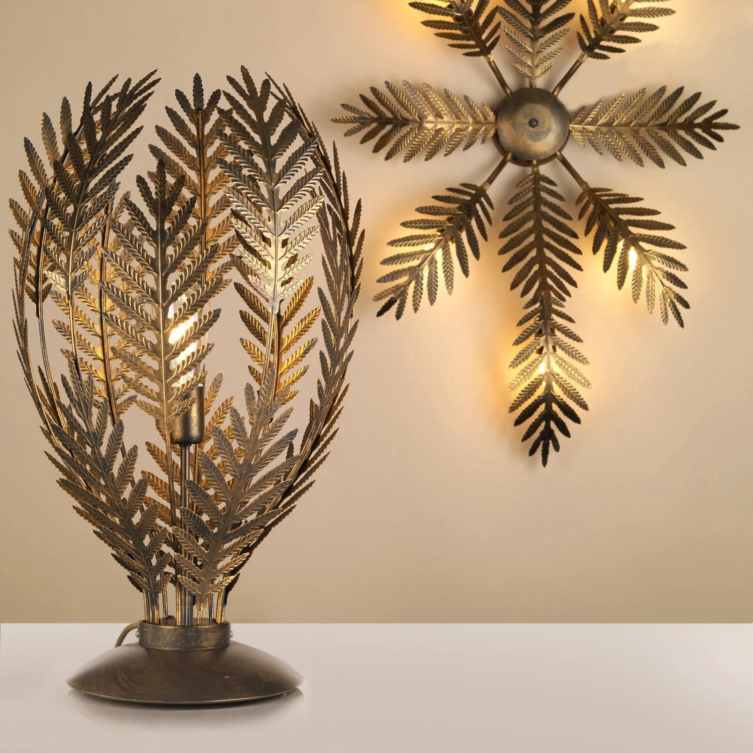 Lampe à Poser Felce Fougère Bronze, Hauteur 61 cm