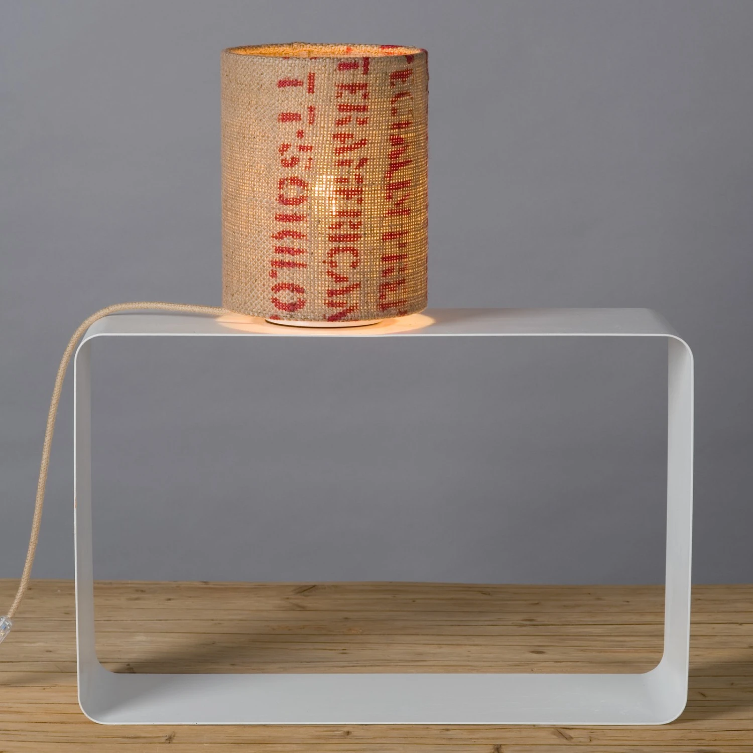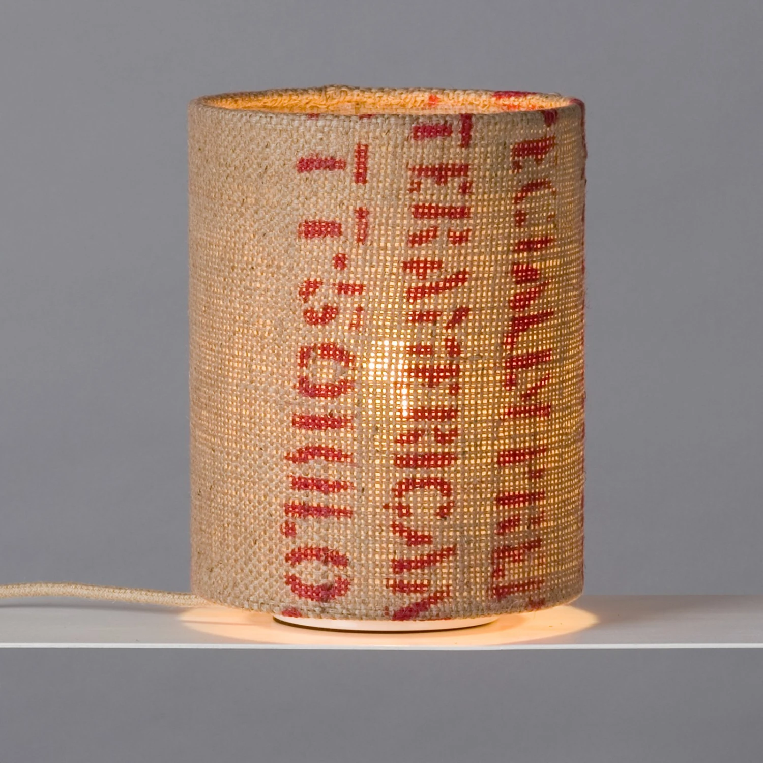 Lampe de table N°17 haricot perlé – abat-jour en sac de café imprimé