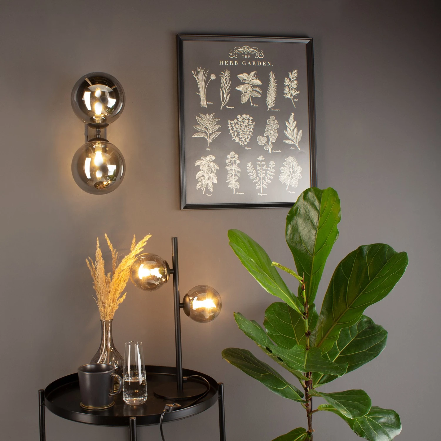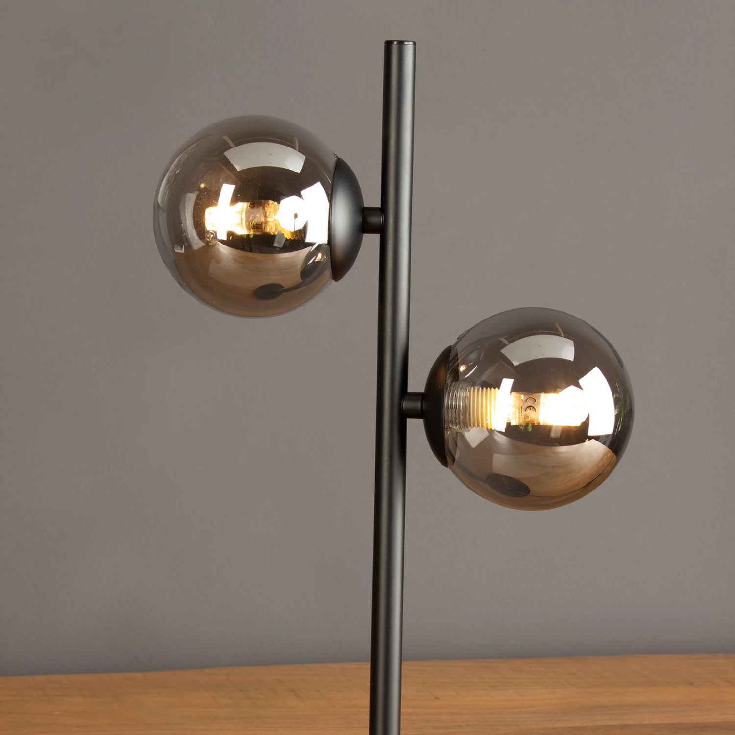 Lampe à Poser Neptune Noire, 2 Sphères Verre Fumé