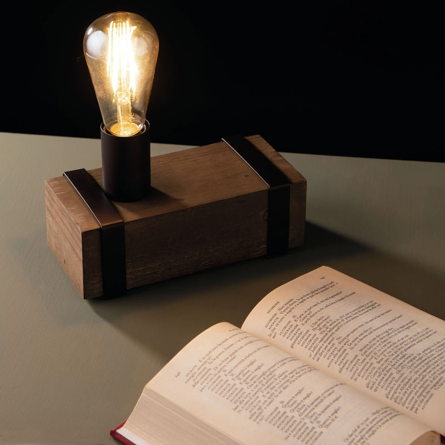Texas est l’accessoire parfait pour un accent rustique-antique dans le coin salon, sur le rebord de la fenêtre ou sur la table d’appoint. La lampe de table combine un parallélépipède en bois antique avec deux bandes qui l’entourent et un cadre en métal brun foncé. Ce dernier est monté à l’extérieur du centre sur le parallélépipède. Comme il n’y a pas d’abat-jour, l’utilisation d’une lampe décorative est recommandée.