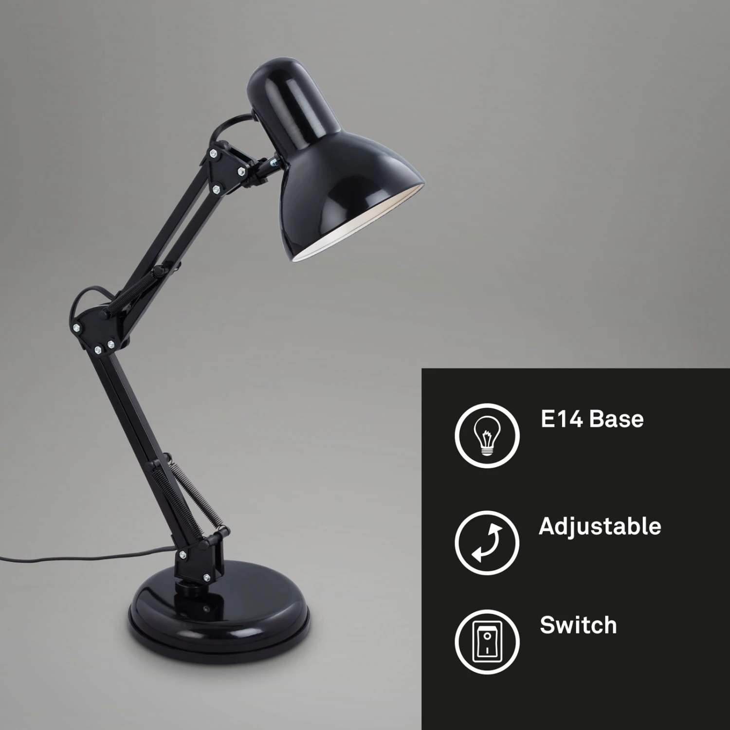 Lampe De Bureau Pixa, Réglable, E14, Noire