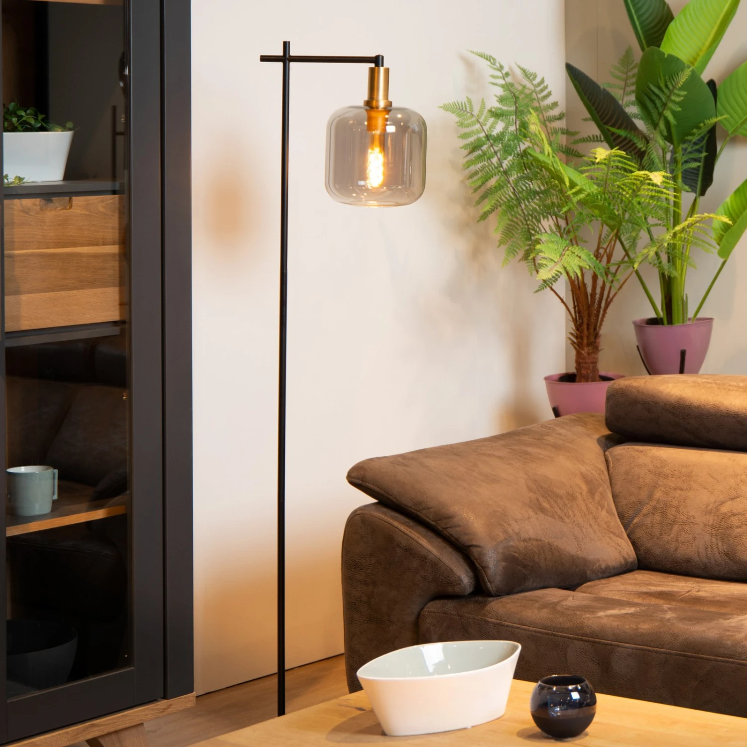 Lampe Sur Pied Joanet Avec Abat-jour En Verre Fumé