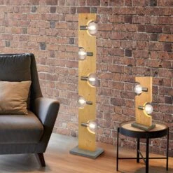 Lampe Sur Pied Tailor En Bois Clair, à Cinq Lampes