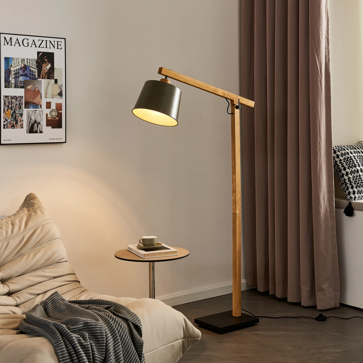 Lampadaire rustique Ashanty en bois de pin et abat-jour en métal