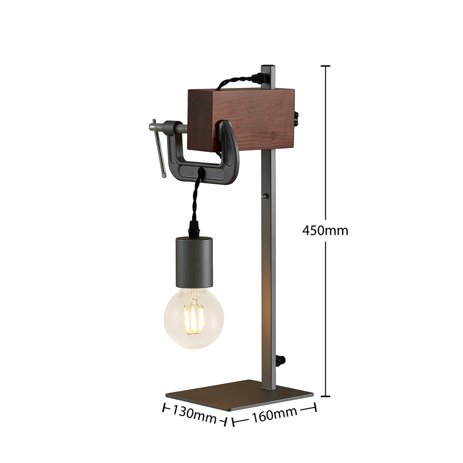 La lampe de table Asja convainc par son design solide en bois et en fer. D’une base rectangulaire s’élève une jambe élancée, au bout de laquelle se trouve un bloc de bois carré. Une douille en fer est fixée à ce bloc de bois au moyen d’une fixation en forme d’étau, dans laquelle on peut insérer un illuminant correspondant. Dans ce cas, il est recommandé de choisir une ampoule à filament, car cela améliore encore l’apparence du luminaire. L’aspect intéressant de la lampe de table Asja répand un air de maison de campagne dans la décoration intérieure et donne des accents concis. Placé sur une table, il fournit un éclairage d’accentuation agréable et constitue également un objet de décoration sensationnel. Son caractère chaleureux est particulièrement mis en valeur dans les salles de séjour.