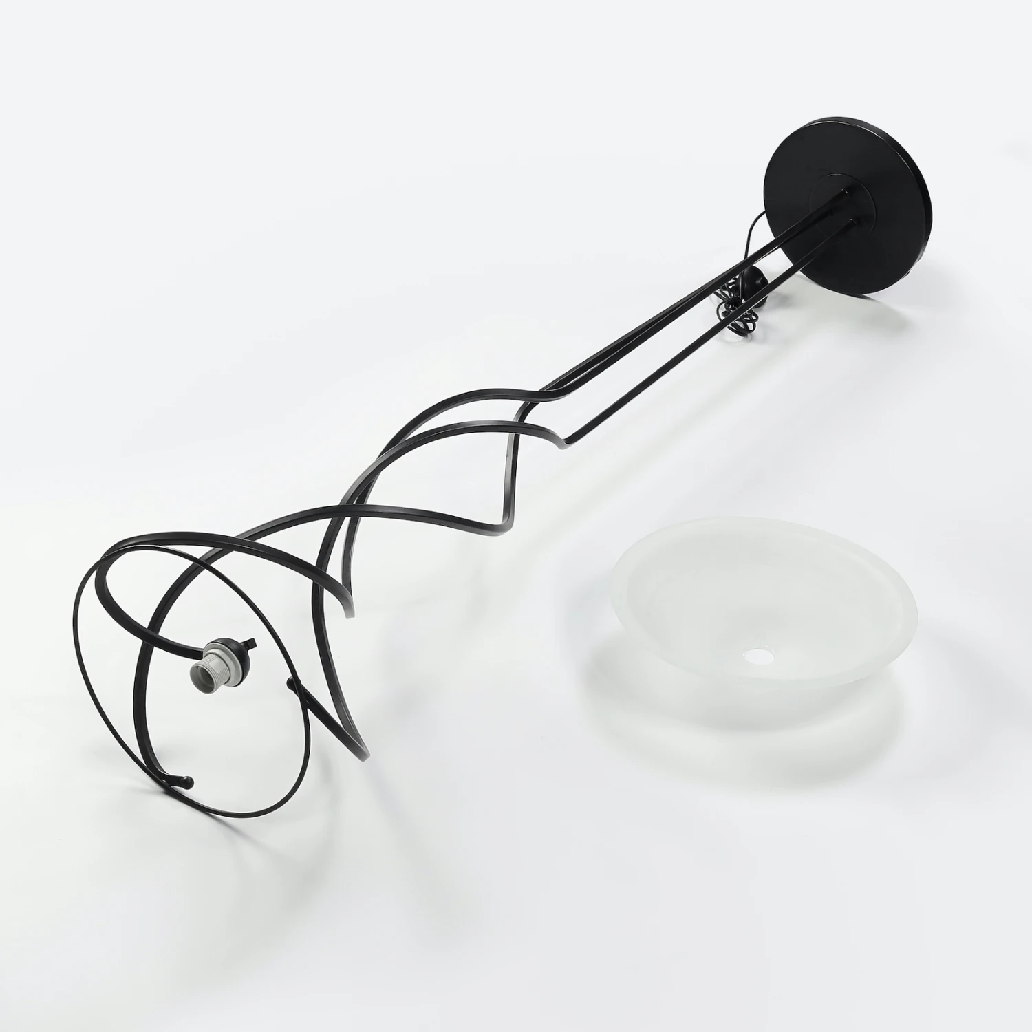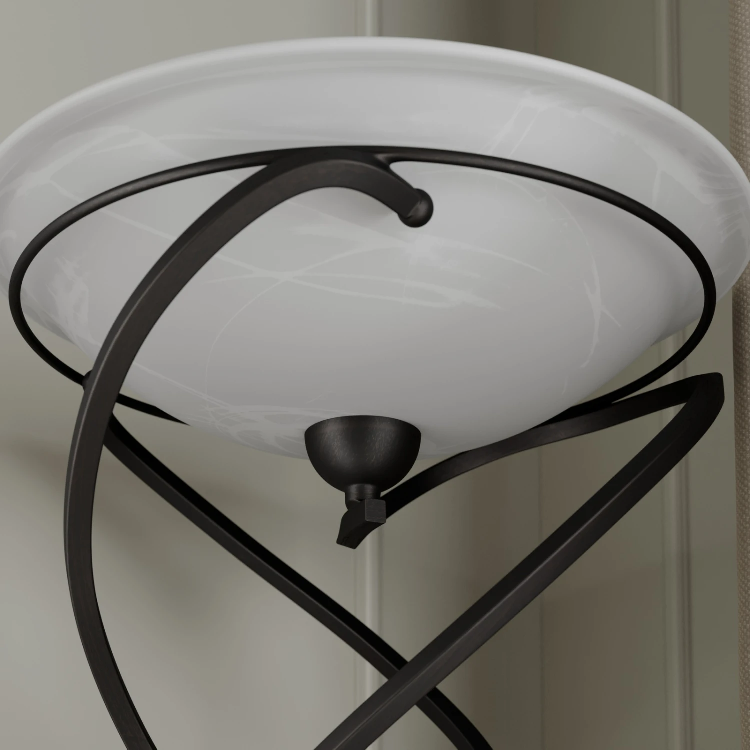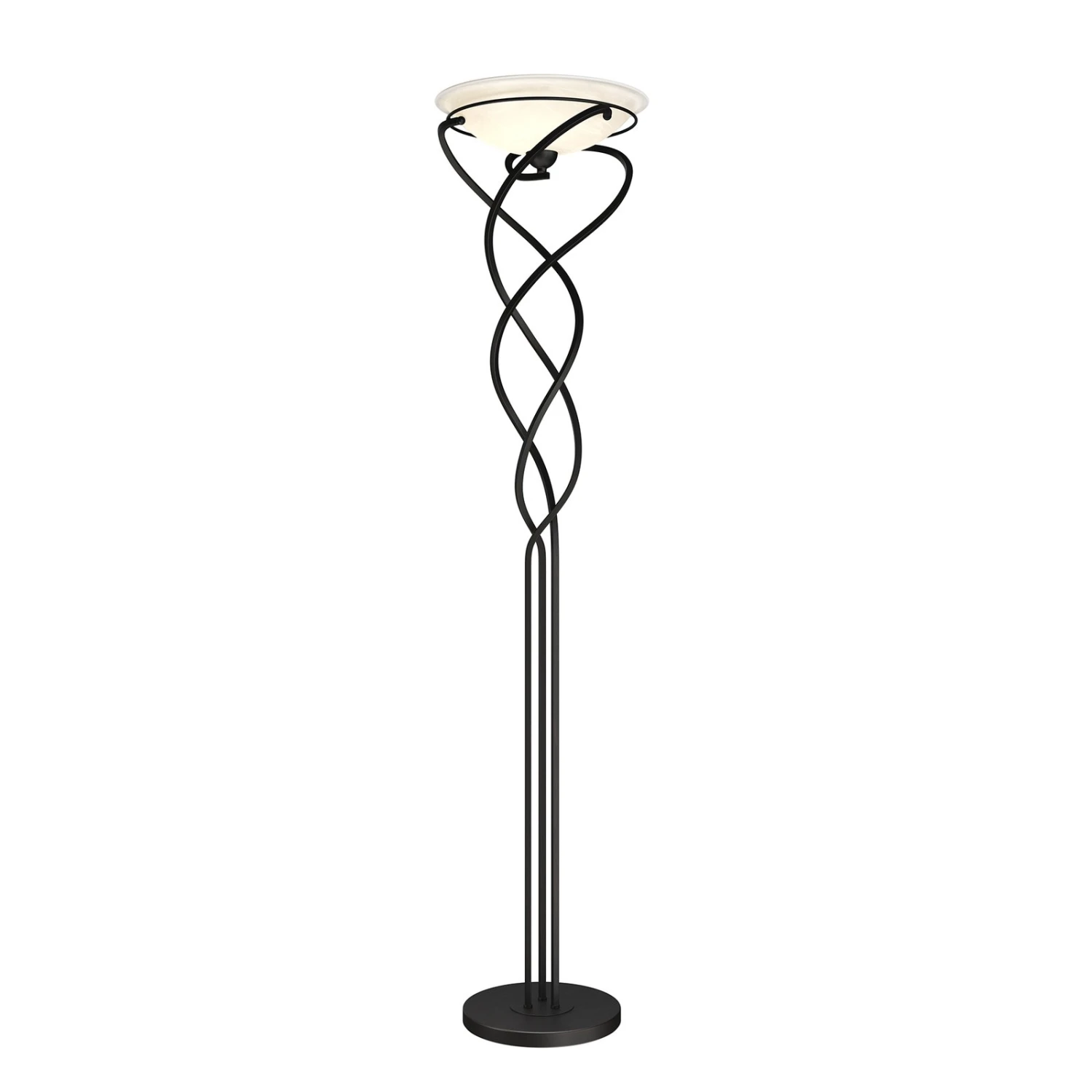 Lampadaire à éclairage indirect Lilou élégant avec une coque en verre et un support métallique brun foncé en forme de spirale