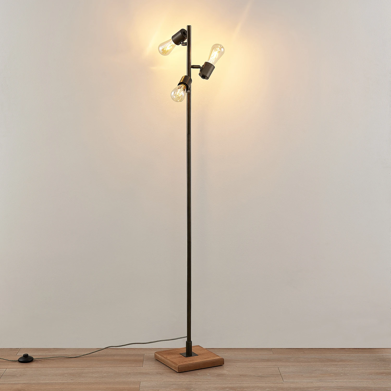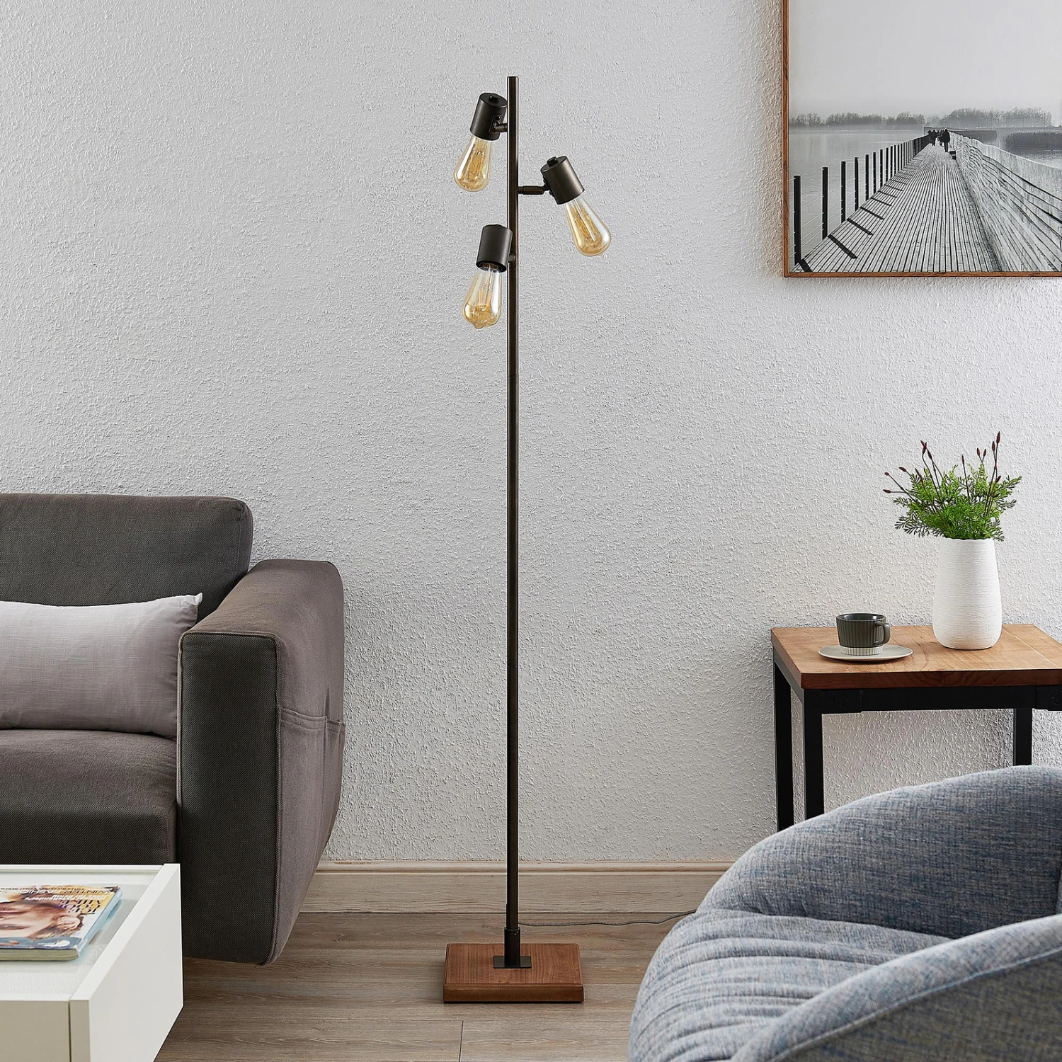 Le lampadaire Nilaska est un objet d’Ă©clairage minimaliste qui sĂ©duit par son charme et le mĂ©lange de mĂ©tal et de bois foncĂ©.