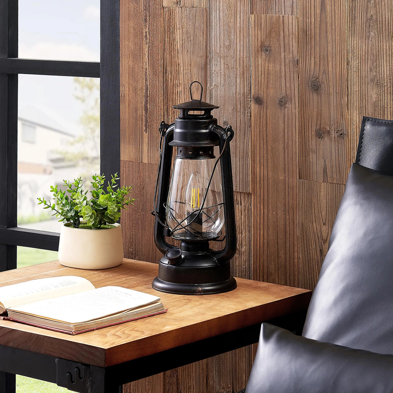 La lampe Raisa s’intègre parfaitement dans les intérieurs de style antique, car cette lampe à poser en forme de lanterne incarne quelque chose de très nostalgique et rappelle effectivement les lampes que l’on transportait avec soi pour s’éclairer la nuit il y a de ça plusieurs siècles. Mais à l’époque, les lanternes ne fonctionnaient pas à l’électricité, mais avec des bougies ou du pétrole.