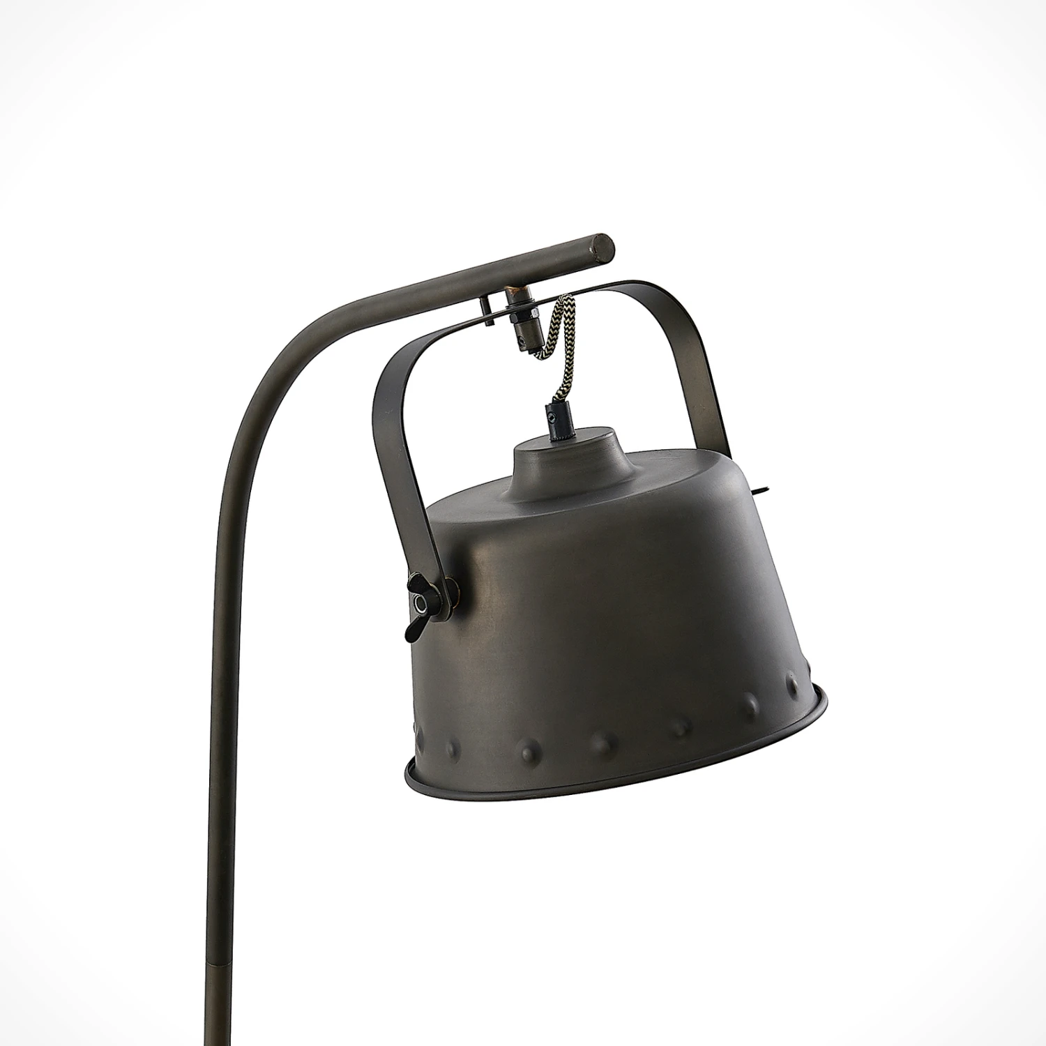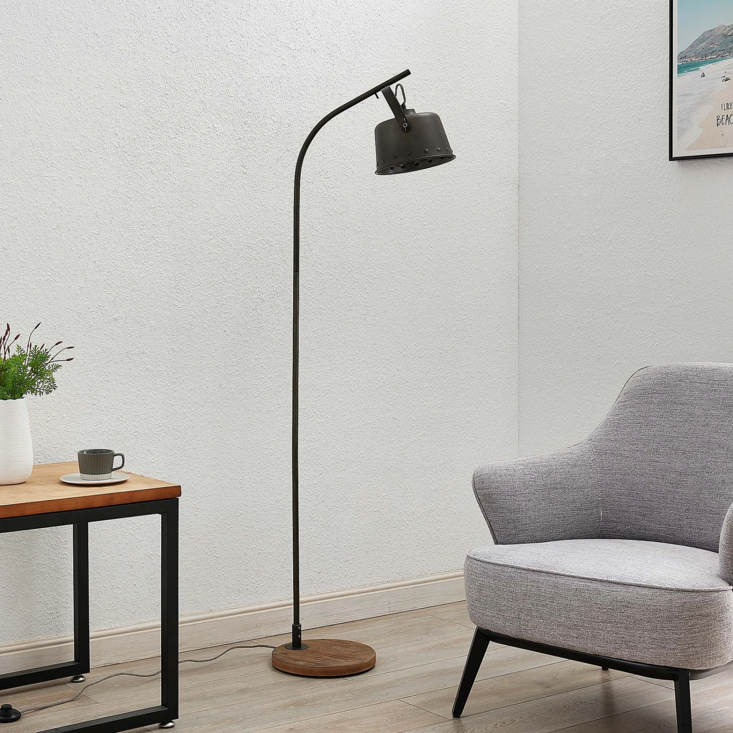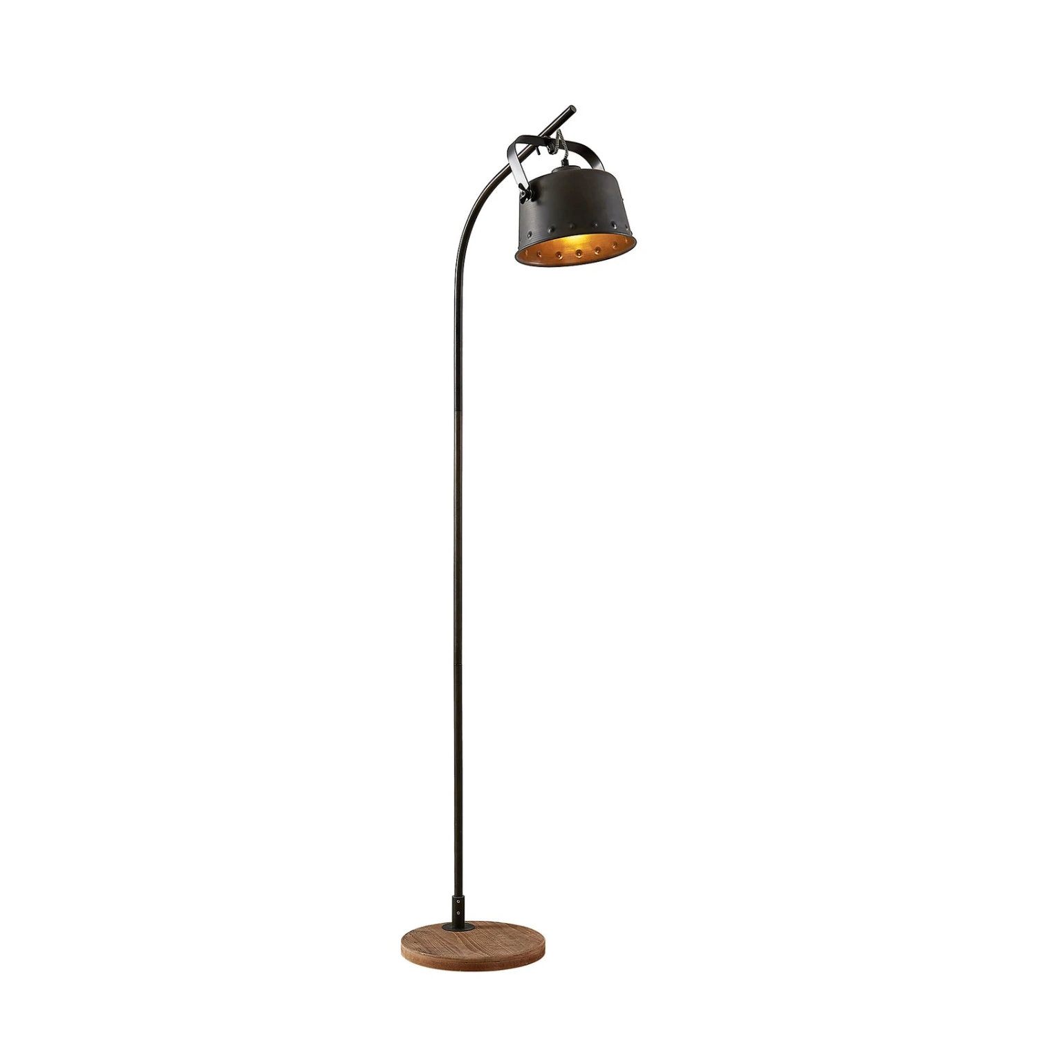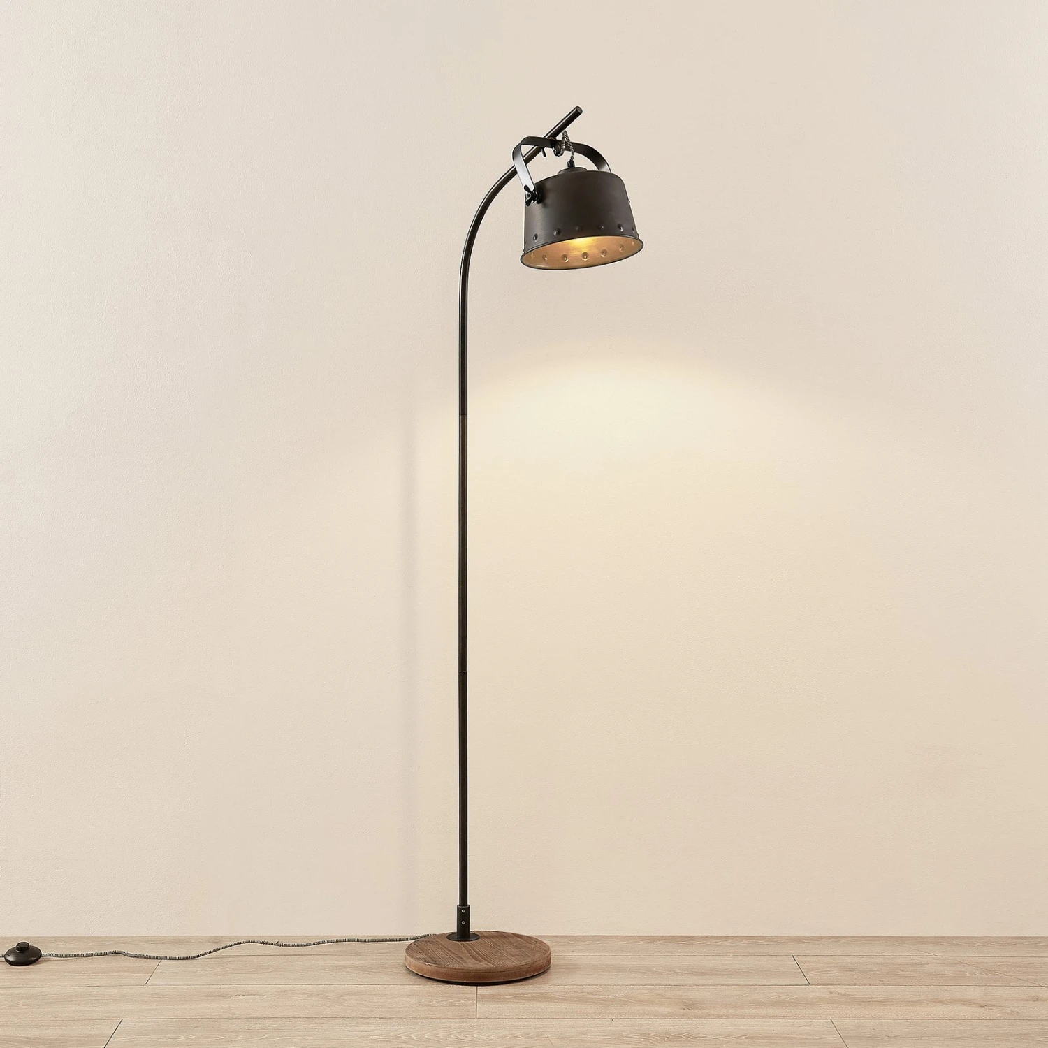 Lampadaire simple flamme Rubinjo avec socle en bois et abat-jour en métal