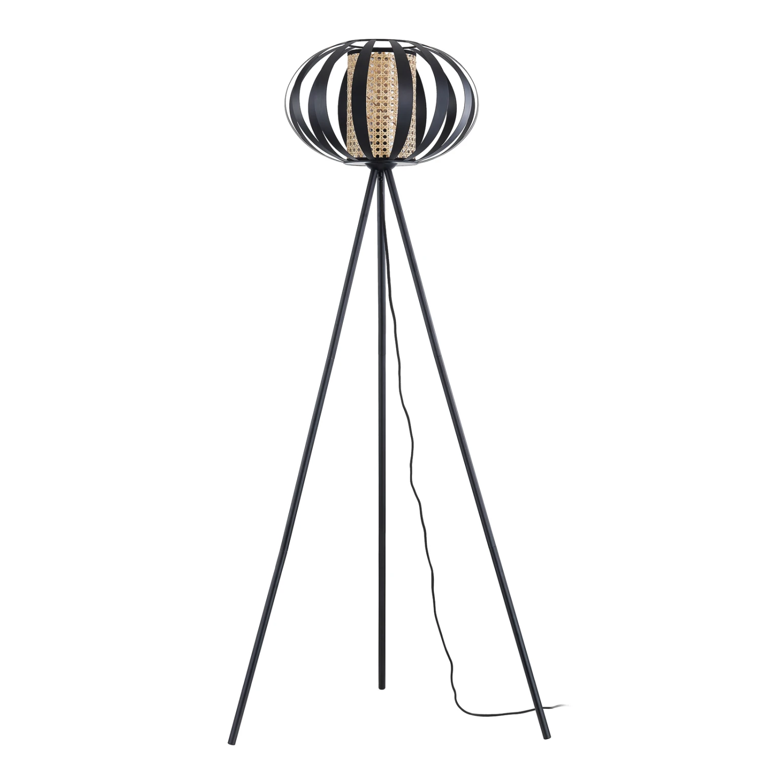 Lindby Tamira Lampadaire Rotin 150 cm Noir