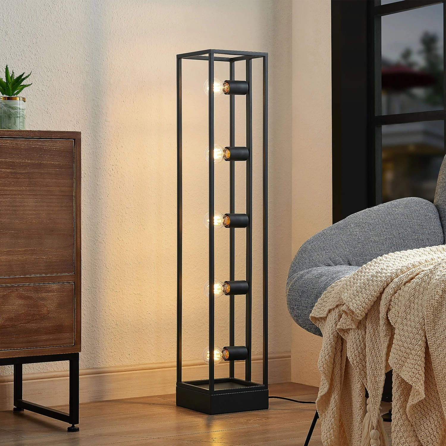 Lampadaire Xamara en forme de cadre en acier noir, à cinq lampes
