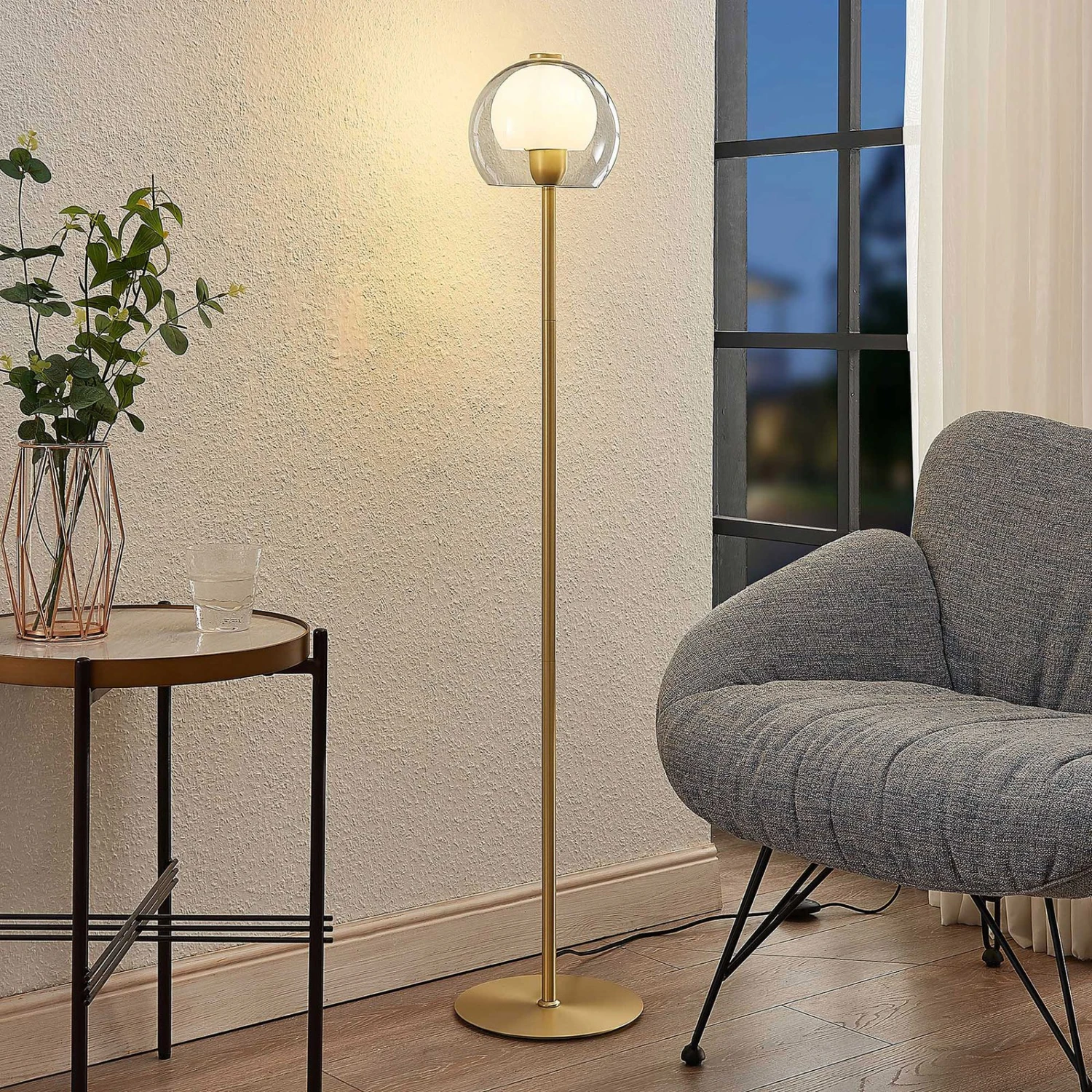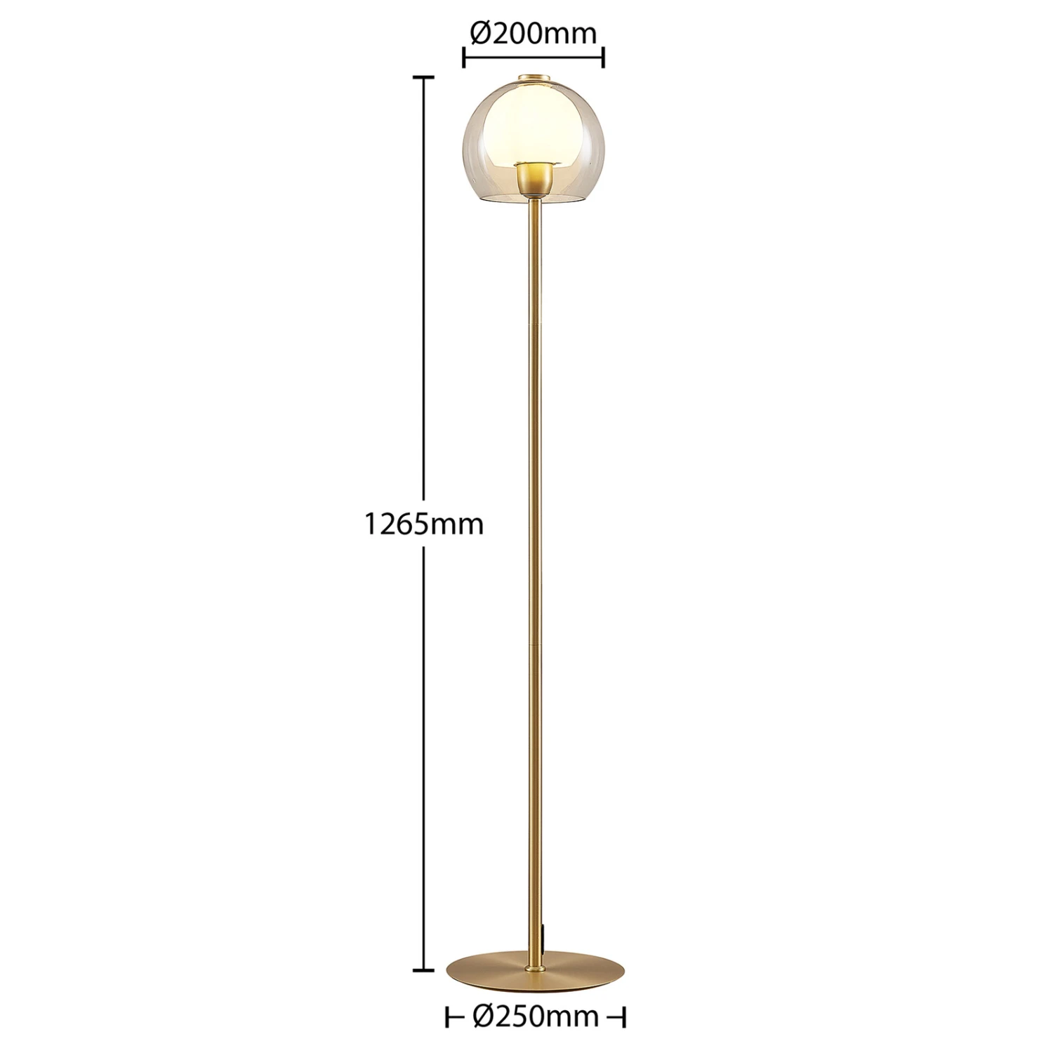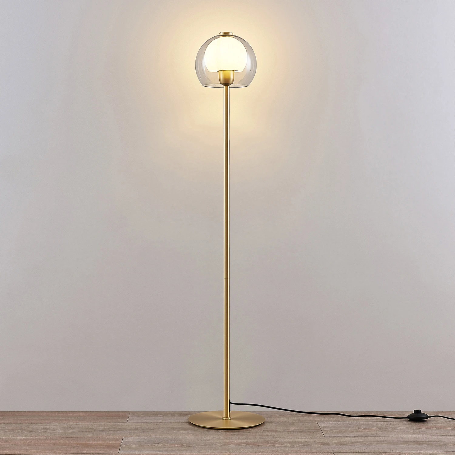 Le lampadaire Mylah est un complément attrayant pour un salon ou une chambre à coucher. Il est en fer, avec une surface couleur laiton, et porte un abat-jour composé de deux hémisphères en verre. Cet abat-jour peut être équipé d’ampoules appropriées, ce qui permet d’adapter l’intensité et la couleur de la lumière à ses propres besoins. Le lampadaire Mylah est le compagnon idéal pour lire un livre le soir sur le canapé et son caractère vintage prononcé confère au mobilier ce petit quelque chose en plus. De plus, le luminaire s’allume et s’éteint facilement grâce à un interrupteur à fil.