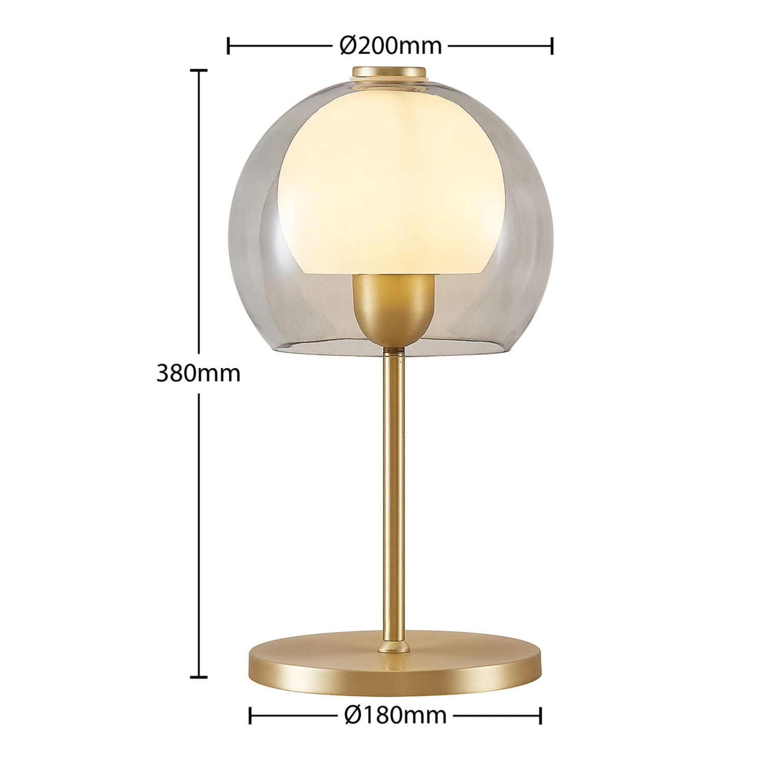 Mylah est une lampe de table très particulière. Elle diffuse son look vintage chic à l’intérieur et apporte une touche d’originalité. À son sommet se trouvent deux abat-jour superposés en verre fumé et blanc. Sous ces abat-jour, il est possible d’insérer une ampoule correspondante, ce qui permet d’adapter l’intensité et la couleur de la lumière aux besoins personnels. La lampe de table Mylah trouve parfaitement sa place sur une commode dans l’entrée ou sur un bureau dans le bureau