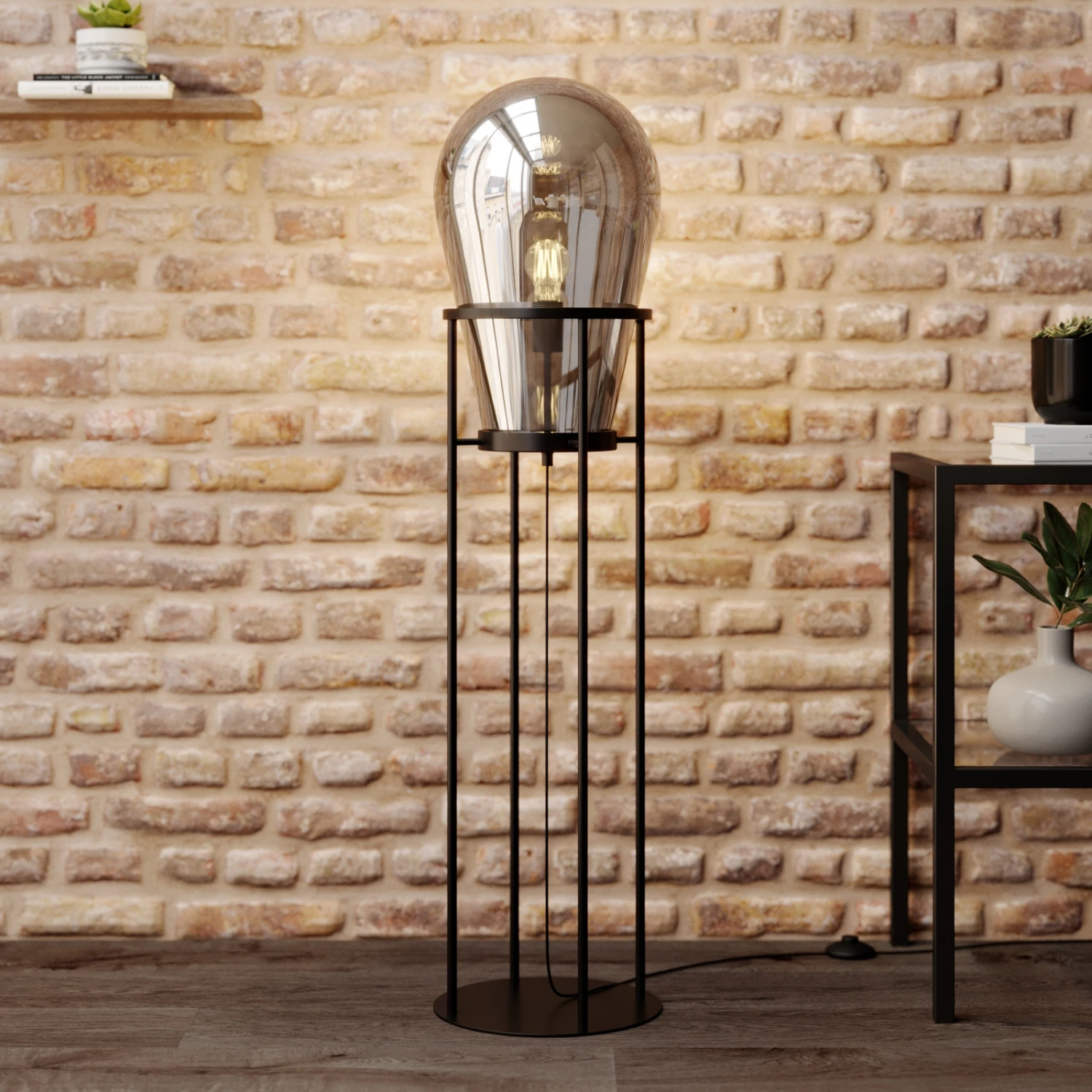 Les amateurs de style vintage trouveront certainement leur bonheur avec ce lampadaire. Celui-ci ne se compose pas d’un abat-jour habituel et d’un support classique, mais possède plutôt un ballon en verre teinté en gris fumée, qui apporte une allure bien particulière. Par ailleurs, un support rond en métal noir se trouve en dessous et vient compléter le look avec style. On recommande une ampoule E27 au look rustique qui complètera l’ensemble avec élégance pour un certain caractère nostalgique.