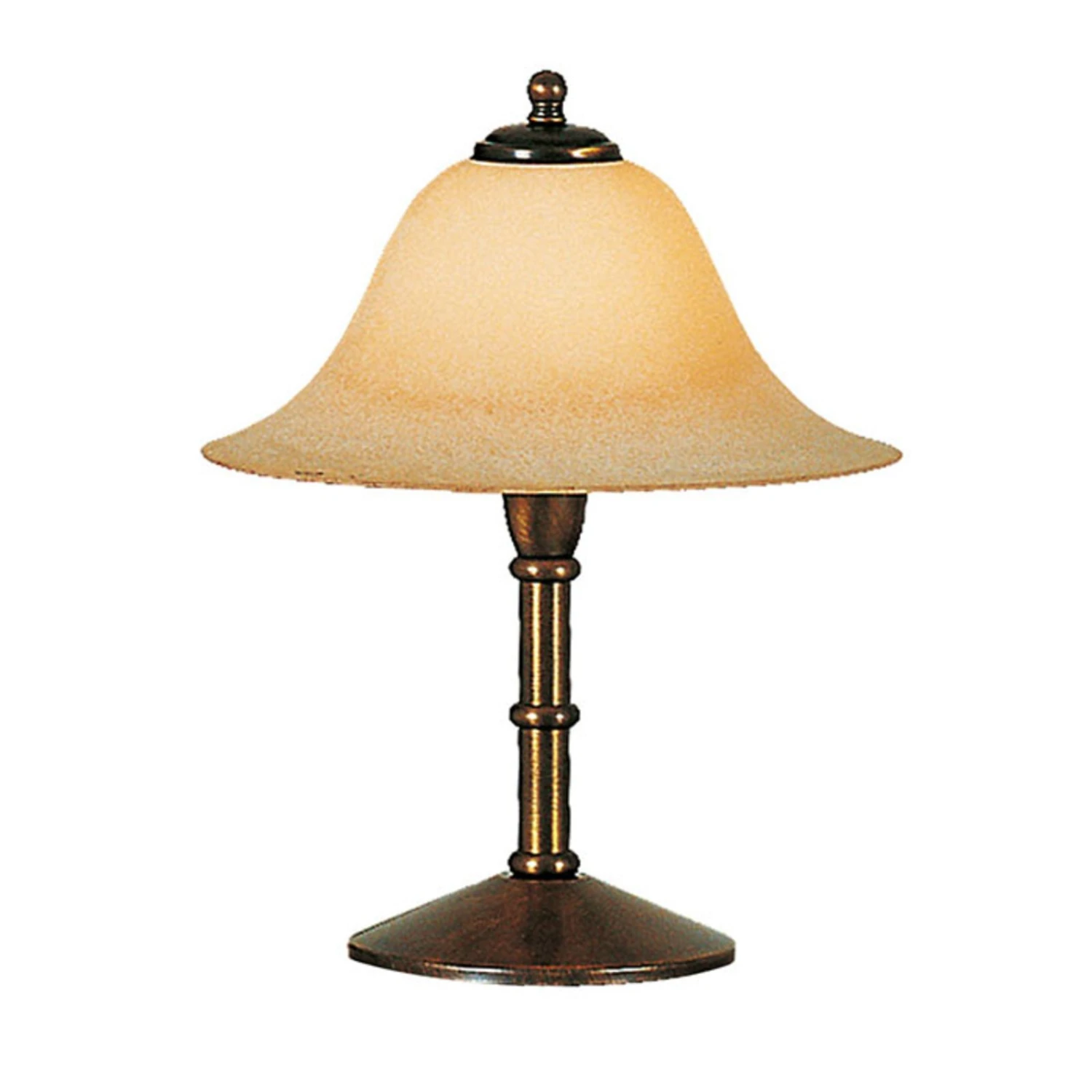 Lampe de table Anno 1900 avec abat-jour en verre fumé Scavo, socle en laiton bruni