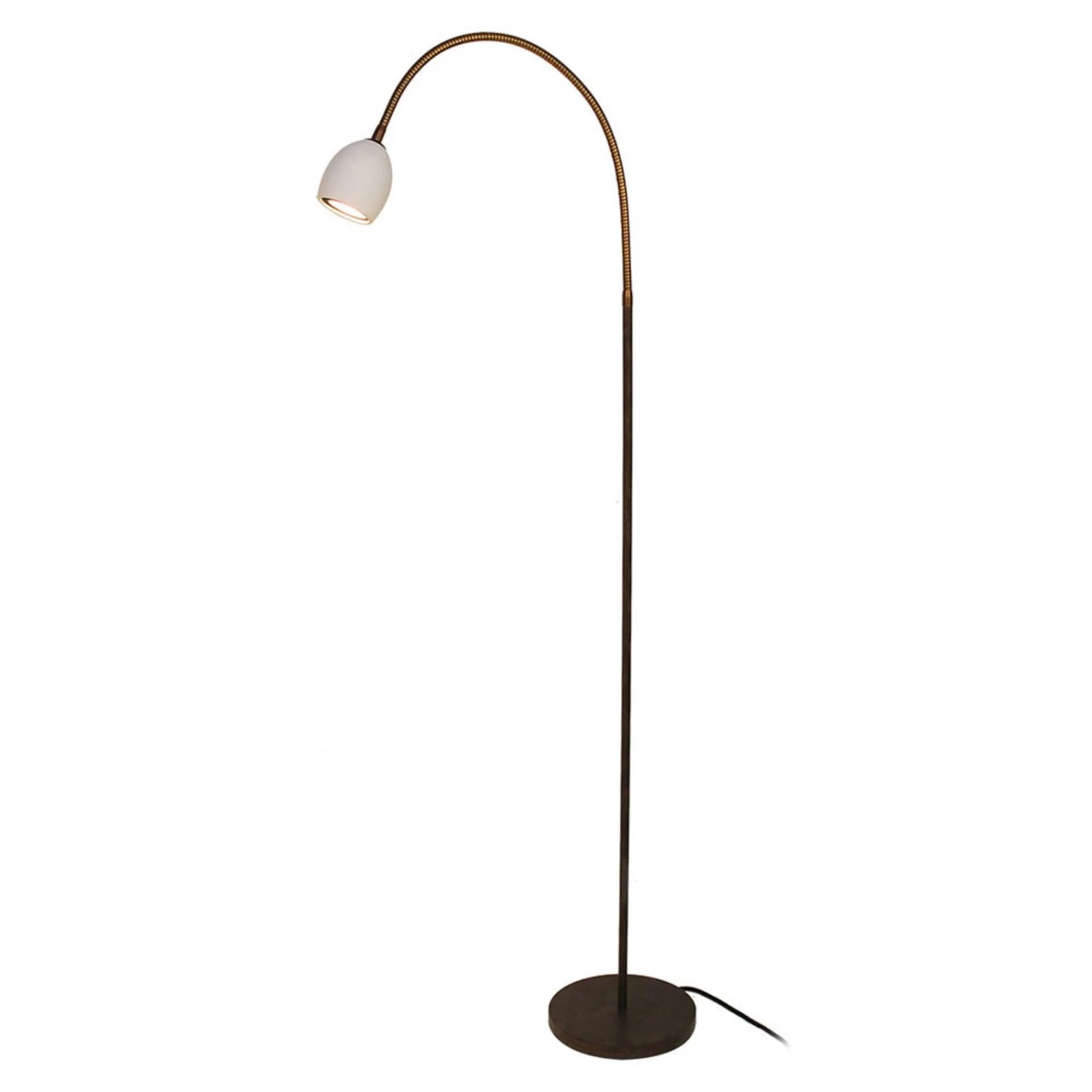 Le lampadaire Provence mat se présente dans un style maison de campagne moderne, qui se compose d’une base ronde avec une tige arquée en fer design brun-noir et d’un abat-jour en céramique blanc mat. Dans la partie supérieure, la tige est conçue comme un bras flexible, de sorte que l’abat-jour peut toujours être parfaitement ajusté pour amener le cône lumineux dans la position souhaitée. Pour cette raison, le petit lampadaire est parfait pour servir de lampe de lecture dans le salon, à côté du fauteuil préféré.