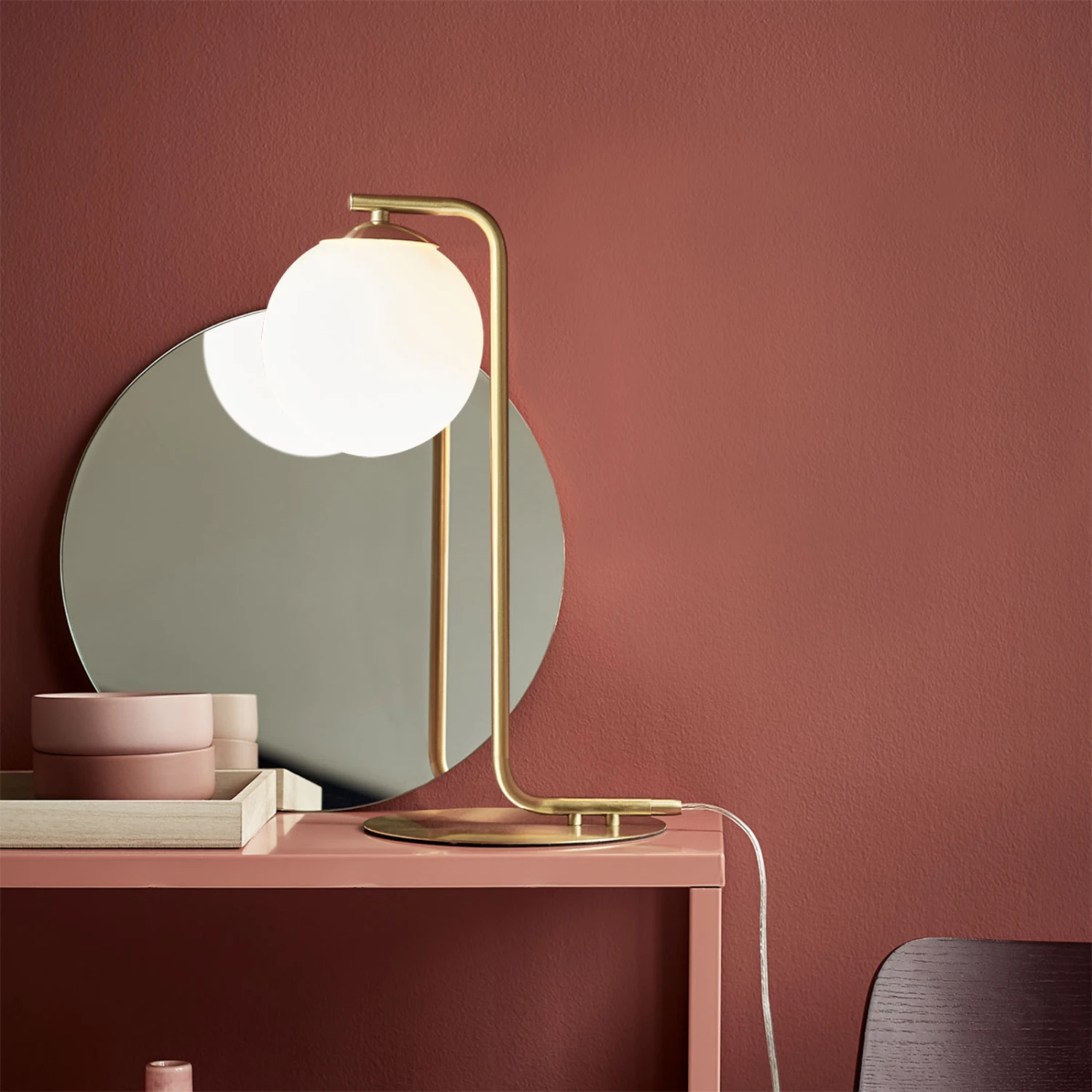 La combinaison d’une finition en laiton brillant et d’un verre blanc opale fait de Grant une lampe de table au look élégant. La base circulaire porte une tige à double courbure qui sert de support pour l’abat-jour orienté vers le bas. Elle se présente sous la forme d’une sphère de verre fermée qui, grâce à son matériau mat, émet une lumière uniforme. La subvention peut être placée de différentes manières sur la table du salon, la table d’appoint ou le rebord de la fenêtre. L’interrupteur marche/arrêt est intégré dans le câble.