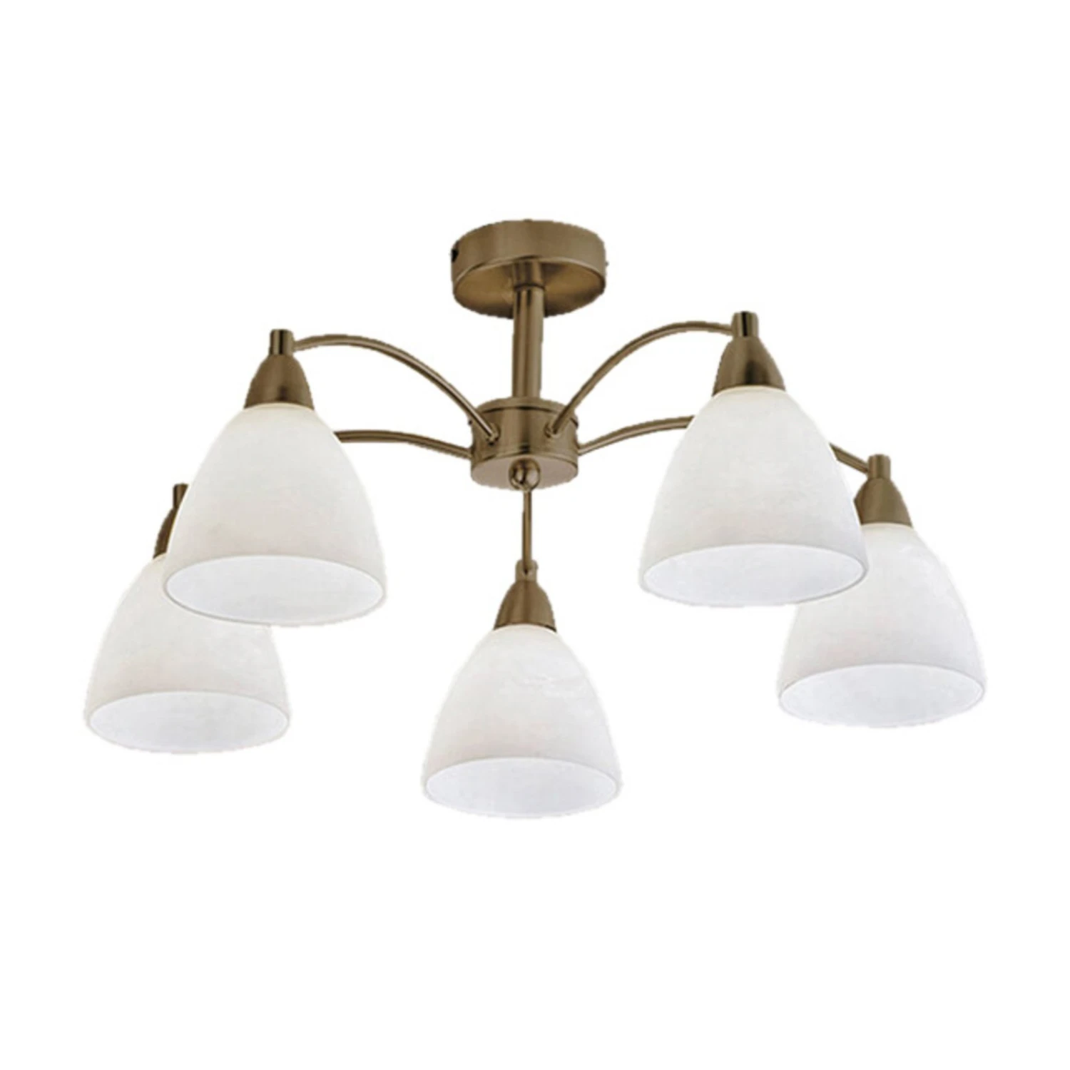 Le plafonnier Kinga est doté de cinq abat-jour ouverts vers le bas et composés de verre opale structuré et discret. Afin de prévenir les éblouissements, les abat-jour tamisent la lumière sur les côtés sans pour autant diminuer la luminosité de la lampe, et même bien au contraire puisque le plafonnier permet un éclairage large et lumineux directement vers le bas. Les abat-jour en verre sont dotés d’une finition classique en laiton vieilli. Le design intemporel du plafonnier en fait une source lumineuse à l’utilisation universelle pouvant aussi bien s’harmoniser avec les styles anciens que modernes.