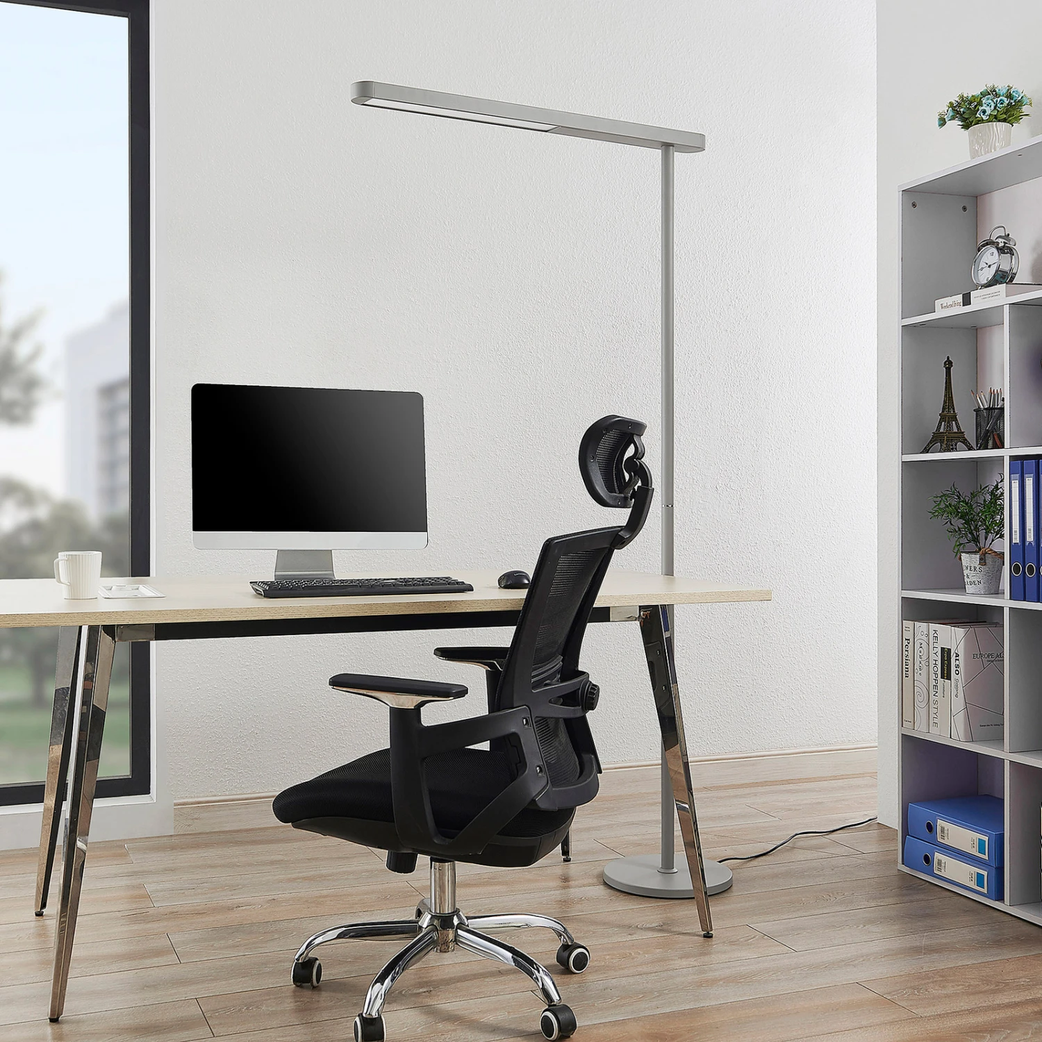 Lampadaire de bureau moderne à LED Jalima au design argenté