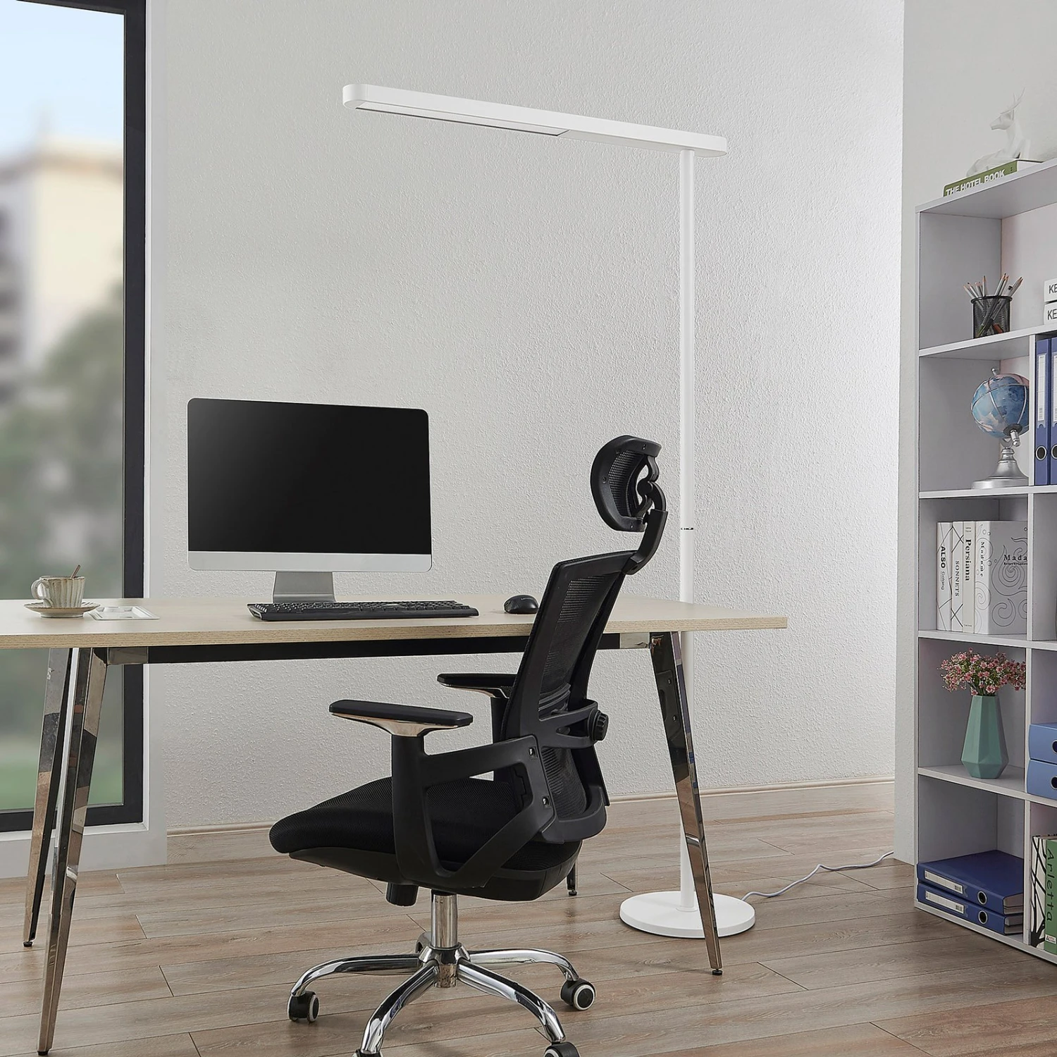 Lampadaire blanc à LED pour bureau Jalima avec émission de lumière blanche universelle