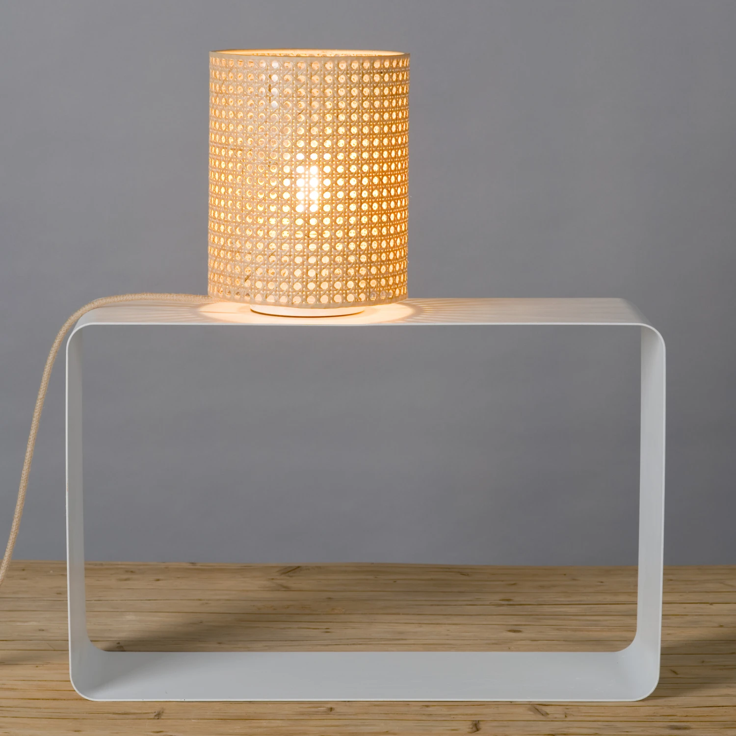 Lampe de table en tressage viennois avec abat-jour cylindrique naturel